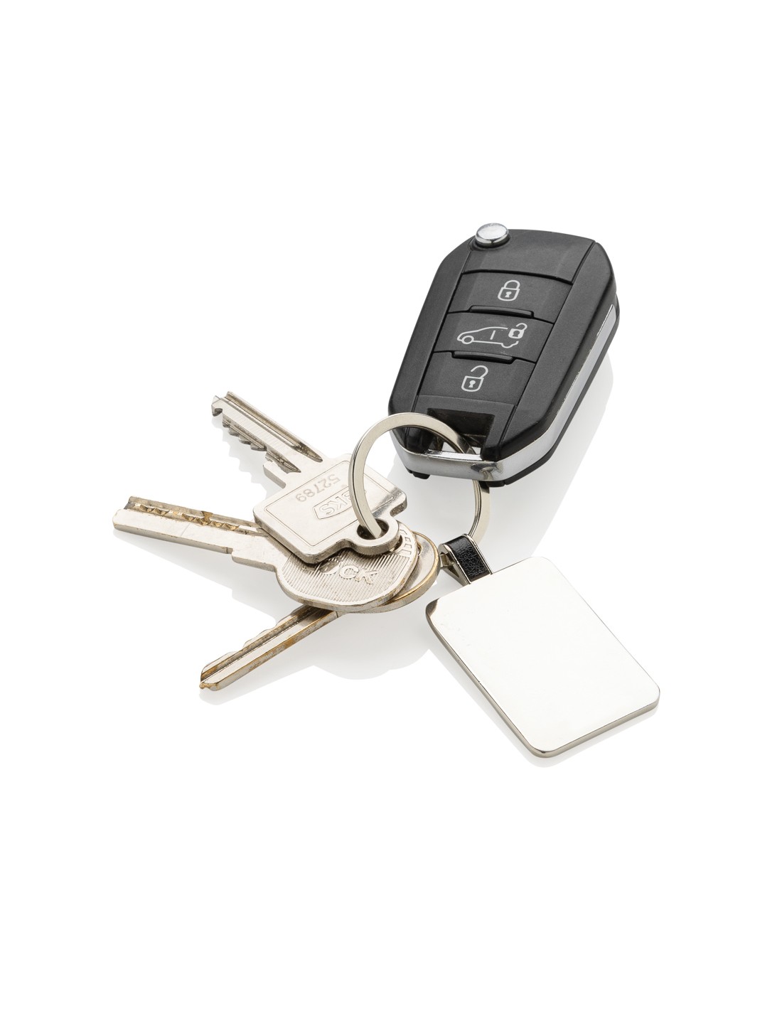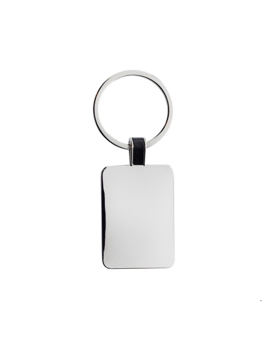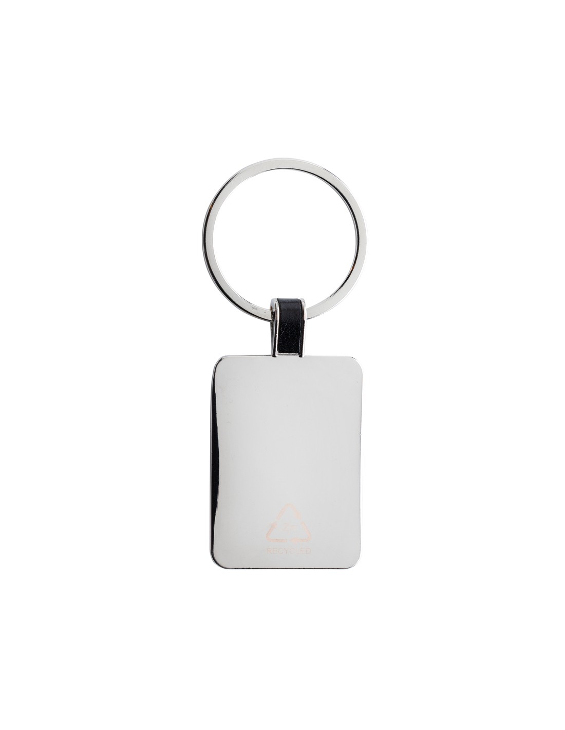 Portachiavi rettangolare in lega di zinco riciclato RCS. Contenuto totale riciclato: 84% in base al peso totale dell'articolo. La certificazione RCS garantisce una filiera completamente certificata dei materiali riciclati. Confezionato in un sacchetto di carta.
