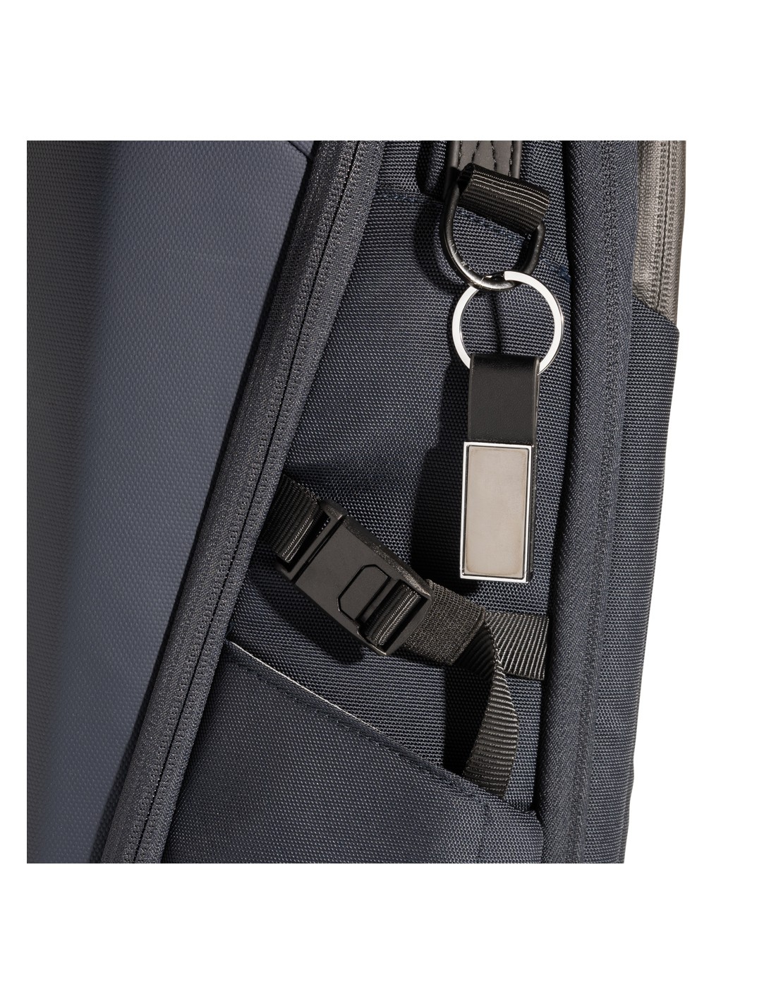 Lussuoso portachiavi realizzato in lega di zinco e PU riciclati RCS. Contenuto totale riciclato: 67% in base al peso totale dell'articolo. La certificazione RCS garantisce una filiera completamente certificata dei materiali riciclati. Confezionato in un sacchetto di carta.