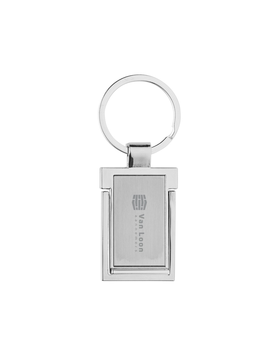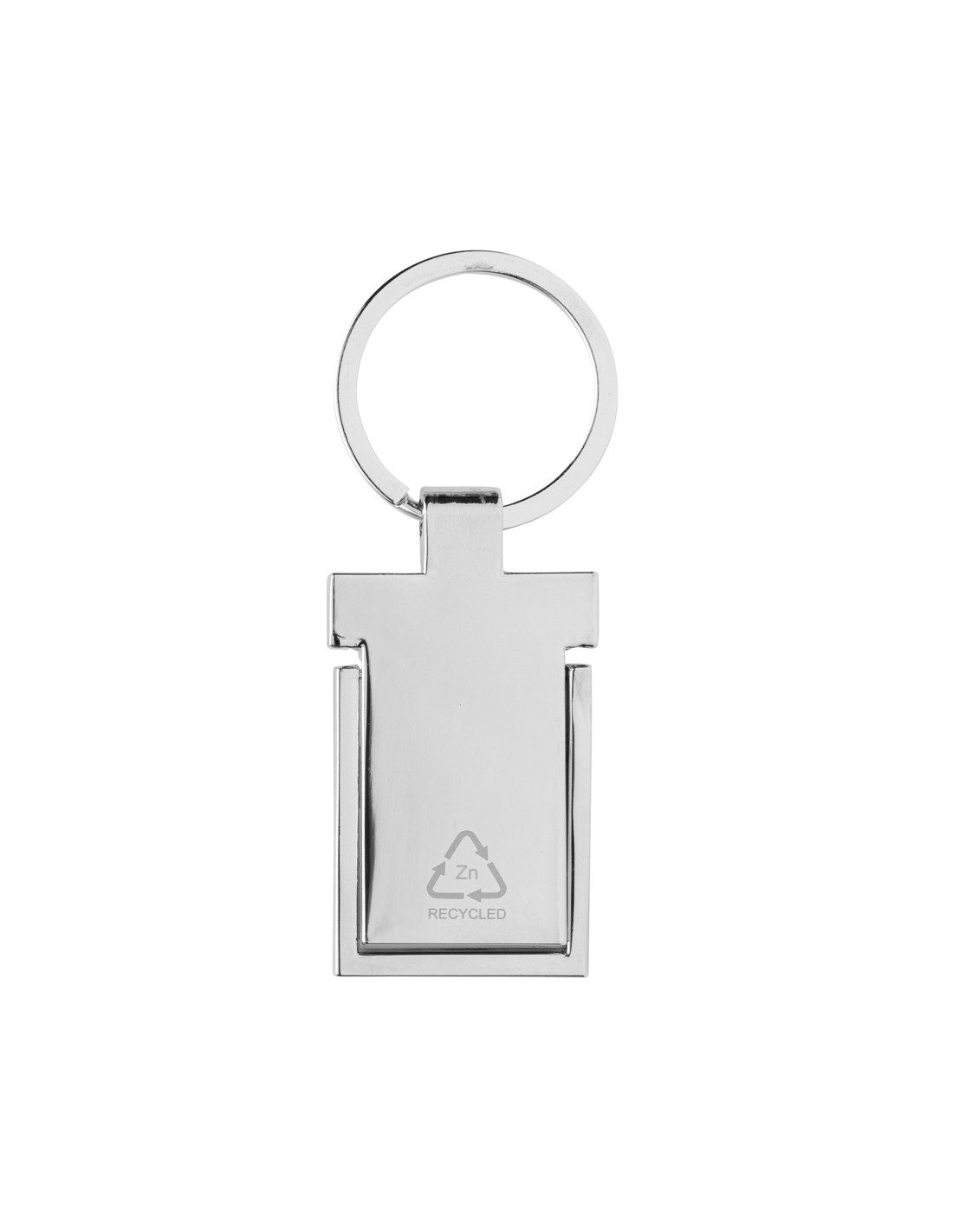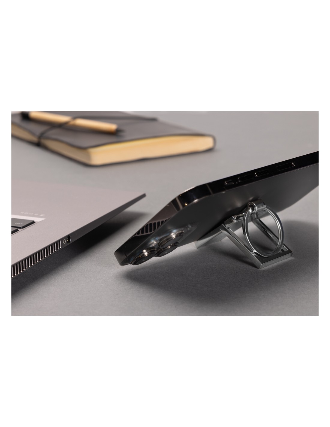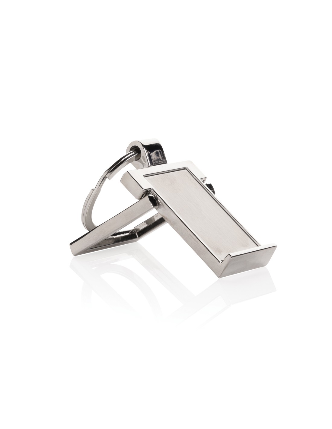 Lussuoso portachiavi con supporto per telefono realizzato in lega di zinco riciclato RCS. Contenuto totale riciclato: 86% in base al peso totale dell'articolo. La certificazione RCS garantisce una filiera completamente certificata dei materiali riciclati. Confezionato in un sacchetto di carta.