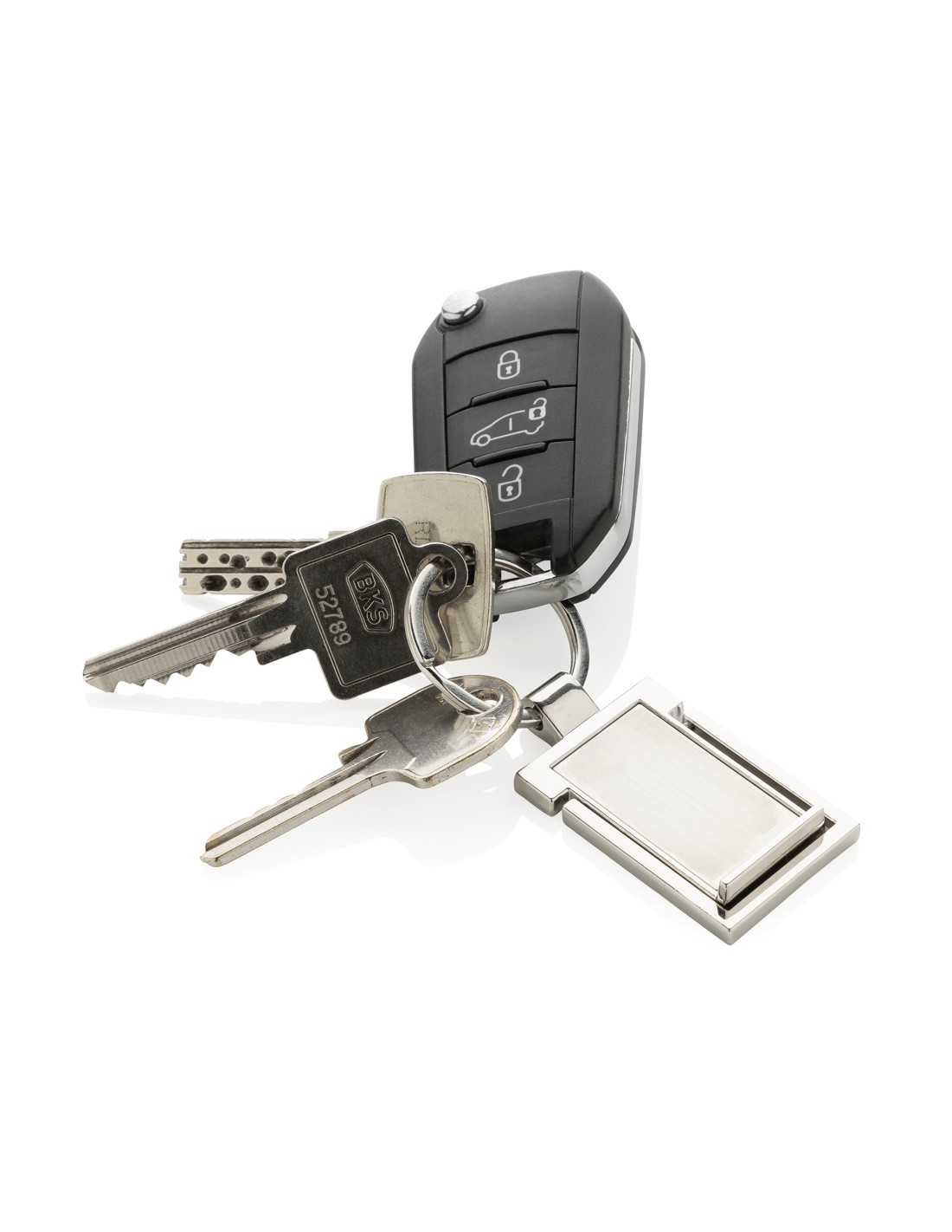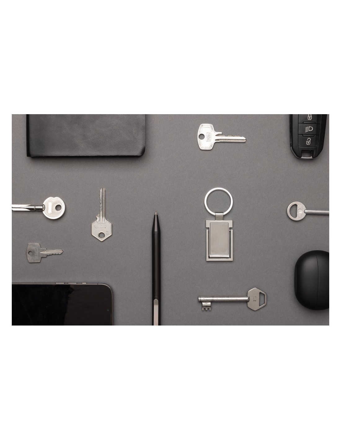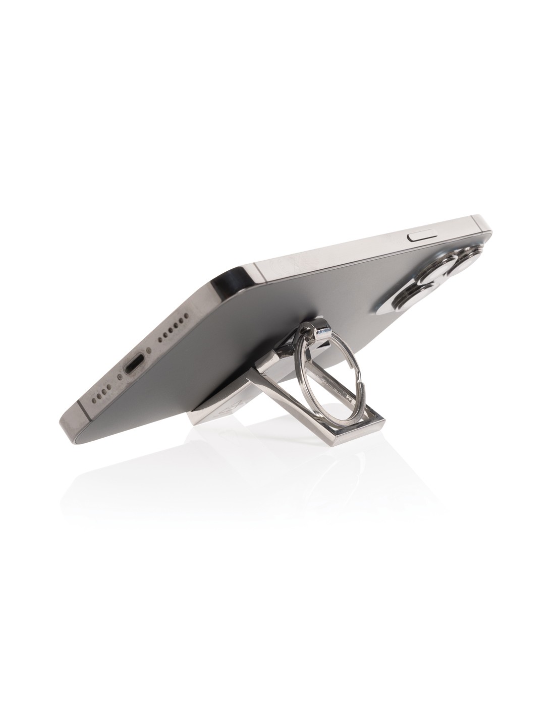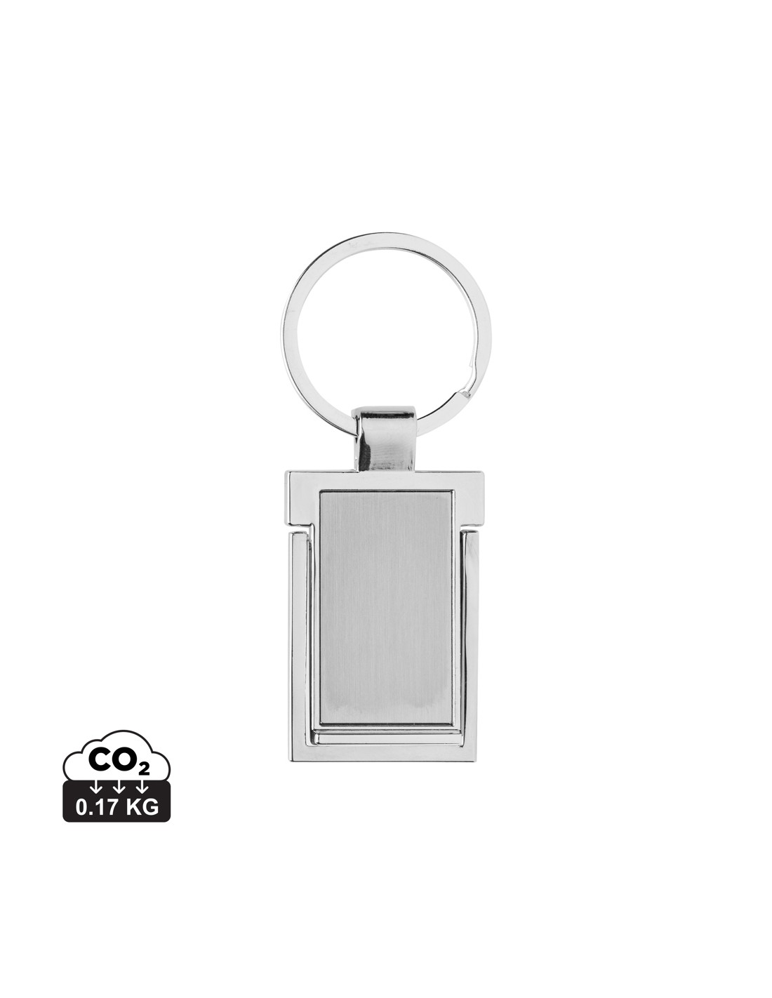 Lussuoso portachiavi con supporto per telefono realizzato in lega di zinco riciclato RCS. Contenuto totale riciclato: 86% in base al peso totale dell'articolo. La certificazione RCS garantisce una filiera completamente certificata dei materiali riciclati. Confezionato in un sacchetto di carta.