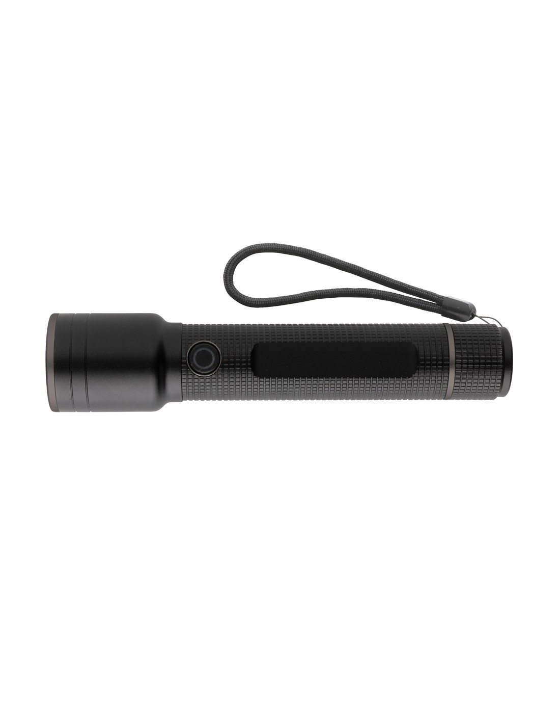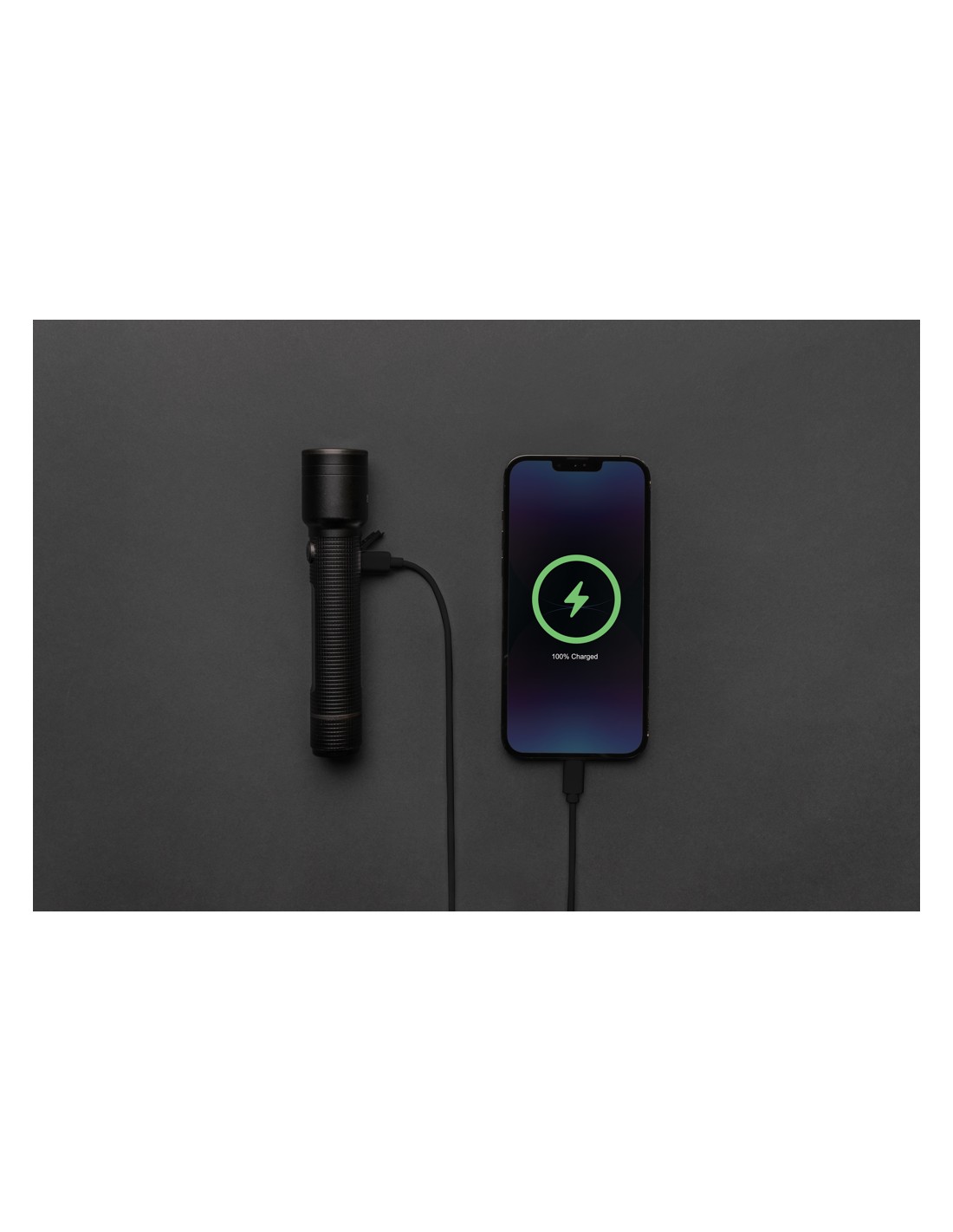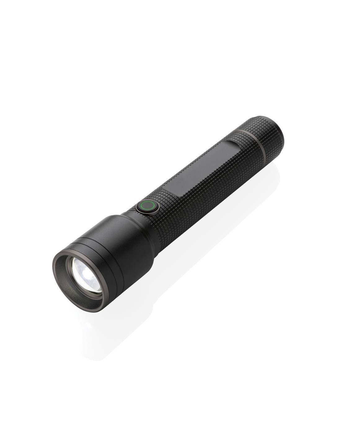 Funzionalità, prestazioni e design si incontrano in questa torcia ricaricabile da 10W realizzata con alluminio riciclato certificato RCS. Contenuto riciclato totale: 20% in base al peso totale dell'articolo. La certificazione RCS garantisce una catena di approvvigionamento dei materiali riciclati completamente certificata. Grazie al suo grado di protezione IP4 è resistente alle intemperie. La potente lampadina genera fino a 800 lumen e un fascio di luce che raggiunge i 500 metri. La torcia utilizza una batteria ricaricabile di grado A, quindi non è necessario sostituire le batterie. È sufficiente ricaricarla tramite la presa USB e il cavo riciclato di type C certificato RCS in dotazione. La lampadina di alta qualità è dotata di 5 modalità, compresa la funzione SOS. La batteria da 500 mah consente un utilizzo fino a 4 ore con una singola carica. L'alluminio non perde le sue caratteristiche nel processo di riciclo e può essere riciclato all'infinito. Articolo e accessori 100% senza PVC.