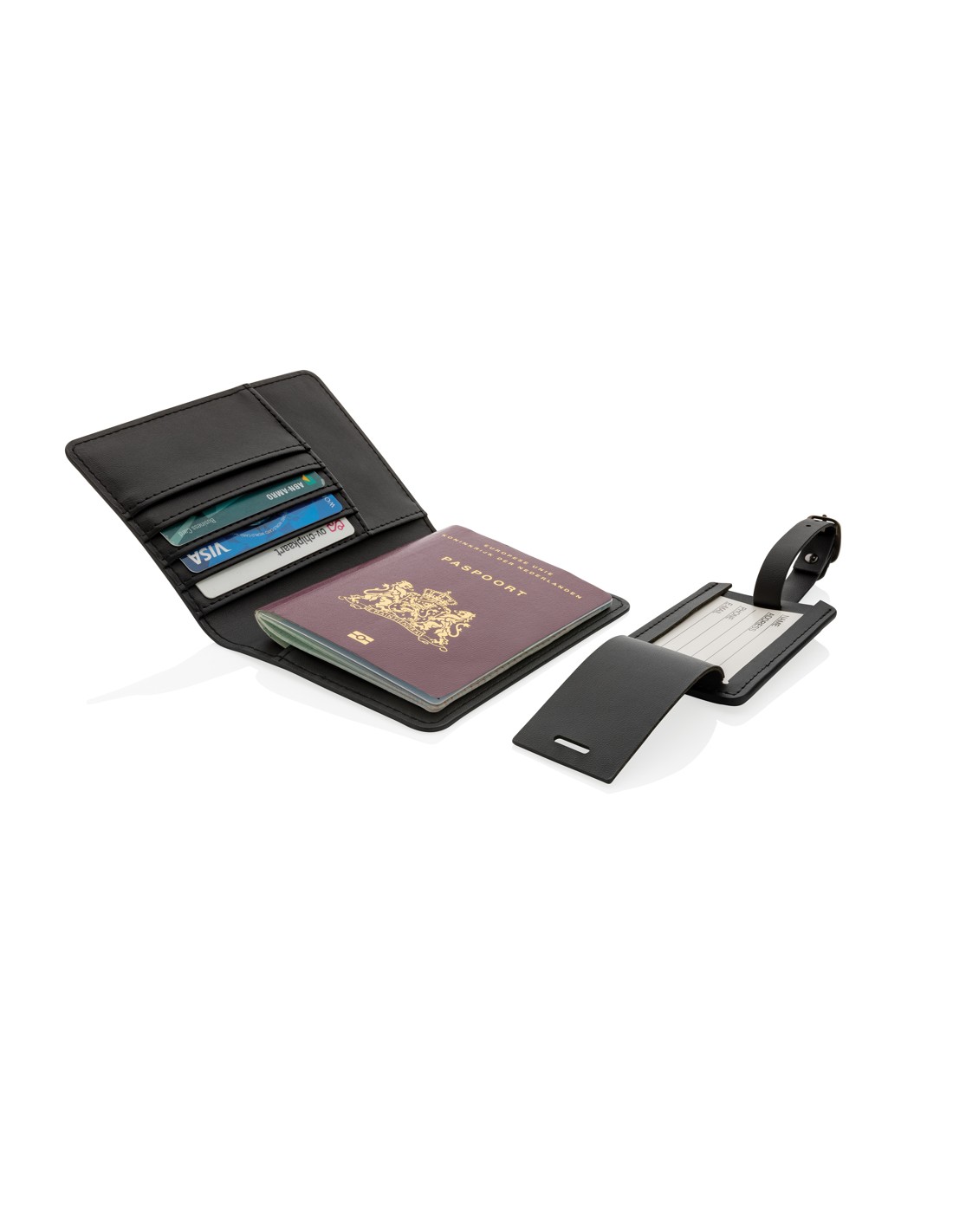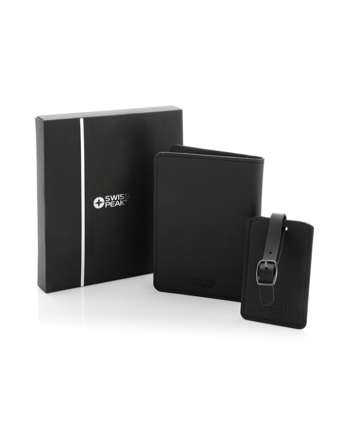 Mantieni il tuo passaporto al sicuro ma sempre a portata di mano grazie a questo elegante porta passaporto in PU riciclato Swiss Peak. Per rendere il tuo viaggio più facile, Gli scomparti extra ti aiutano a tenere al sicuro il tuo abbonamento ai mezzi pubblici e le carte di credito, rendendo più sicuri i tuoi spostamenti. Il porta passaporto ai abbina all'etichetta del bagaglio. Viene fornito in una bella confezione regalo. Realizzato con materiali riciclati certificati GRS (Recycled Claim Standard). La certificazione GRS garantisce una filiera completamente certificata dei materiali riciclati. Contenuto totale riciclato: 70% in base al peso totale dell'articolo. Confezionato in confezione regalo certificata FSC®.