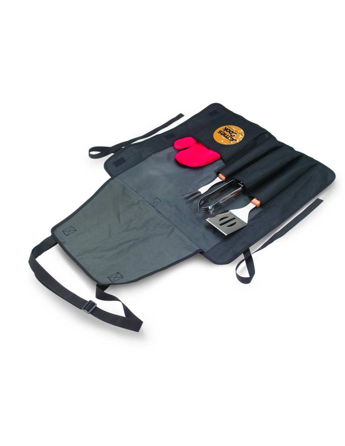 Set da barbecue in bambù composto da 5 pezzi: spatola (40 x 9,5 cm), pinza (34,5 x 6 cm), forchettone (38,5 x 3 cm), coltello (38,5 x 3 cm) e spazzola (38 x 4,3 cm). Il set viene consegnato in una confezione regalo in bambù (46 x 16,2 x 7,4 cm). I manici e la confezione regalo sono realizzati in...