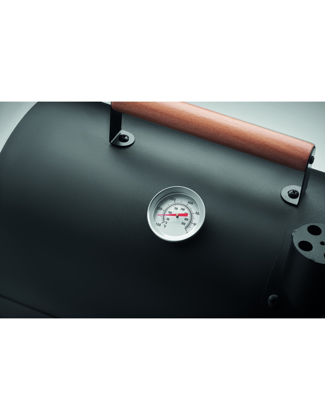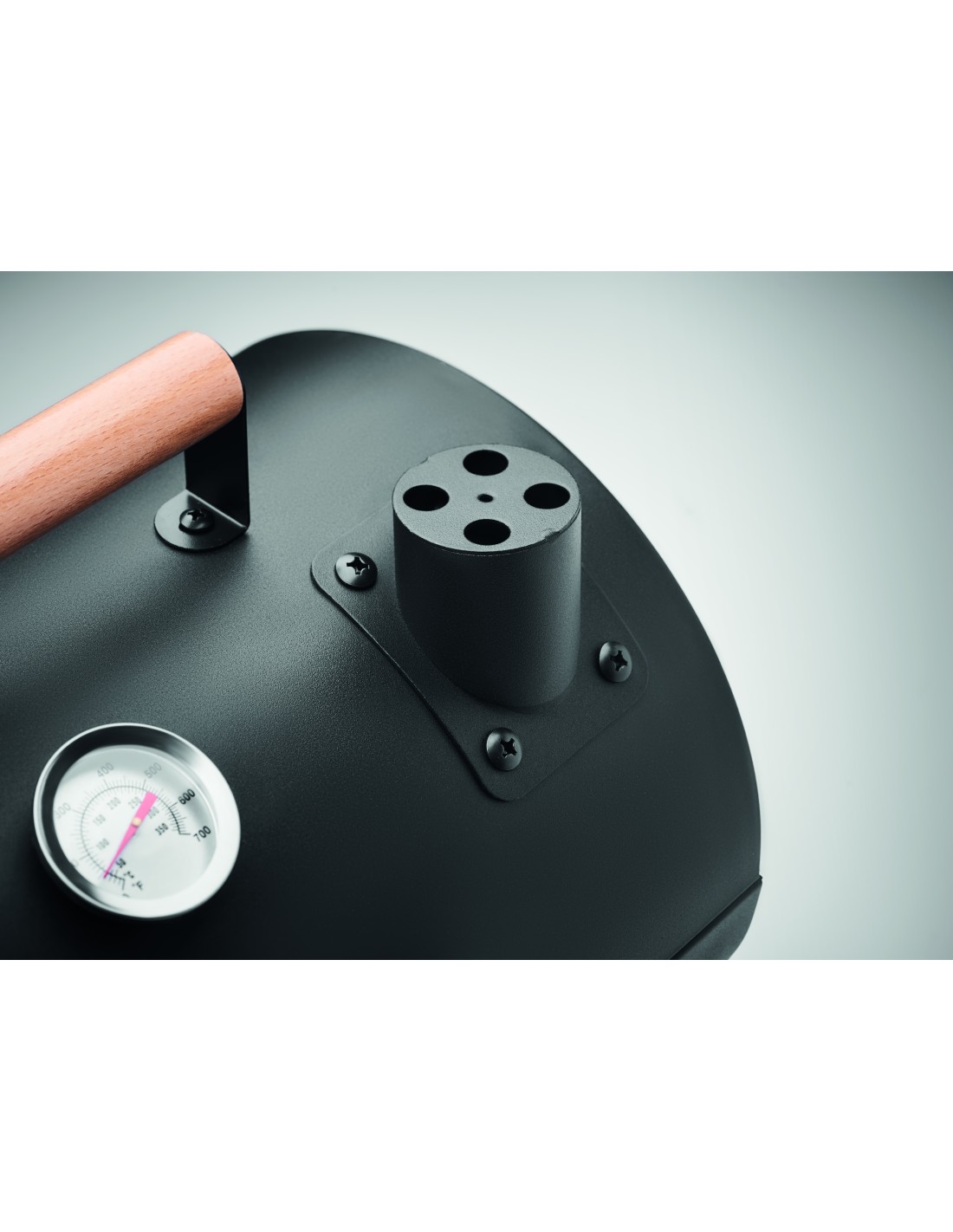 Set di 12 accessori in acciaio inossidabile per il barbecue: 4 spiedini, coltello, 4 ganci per mais, spatola, forchettone e pinze. Confezionato in scatola di alluminio con manico.