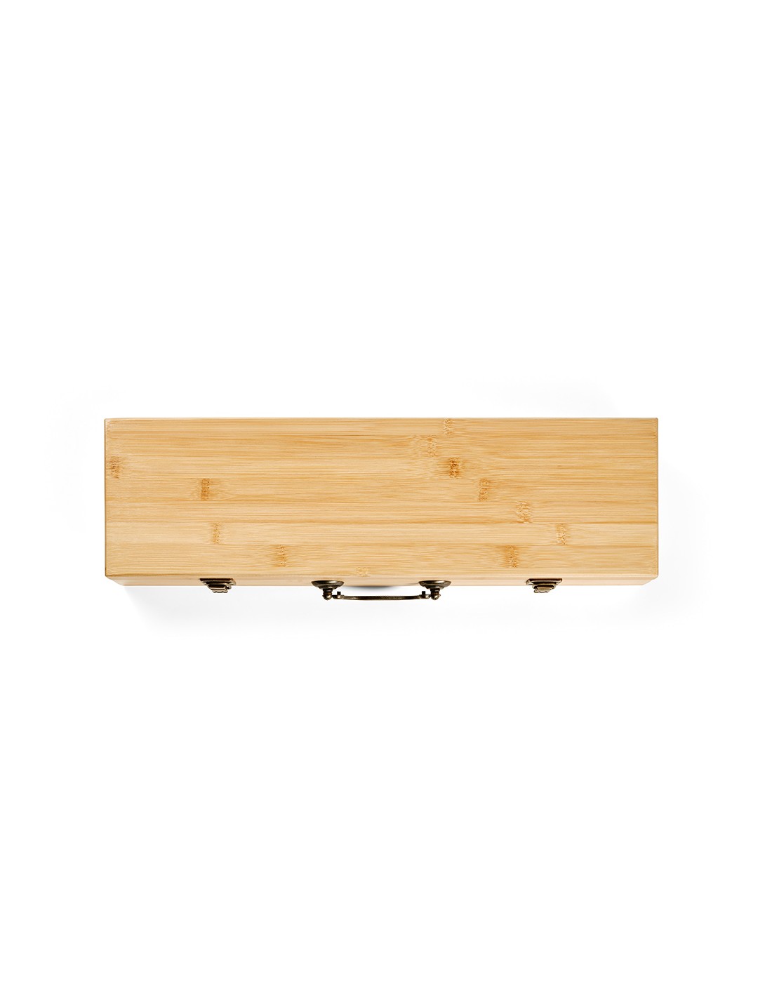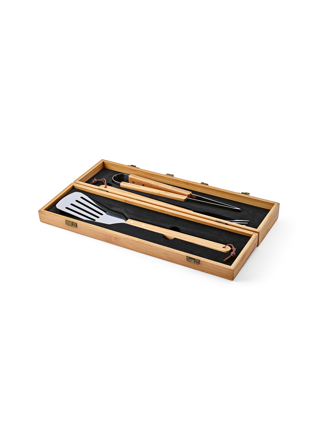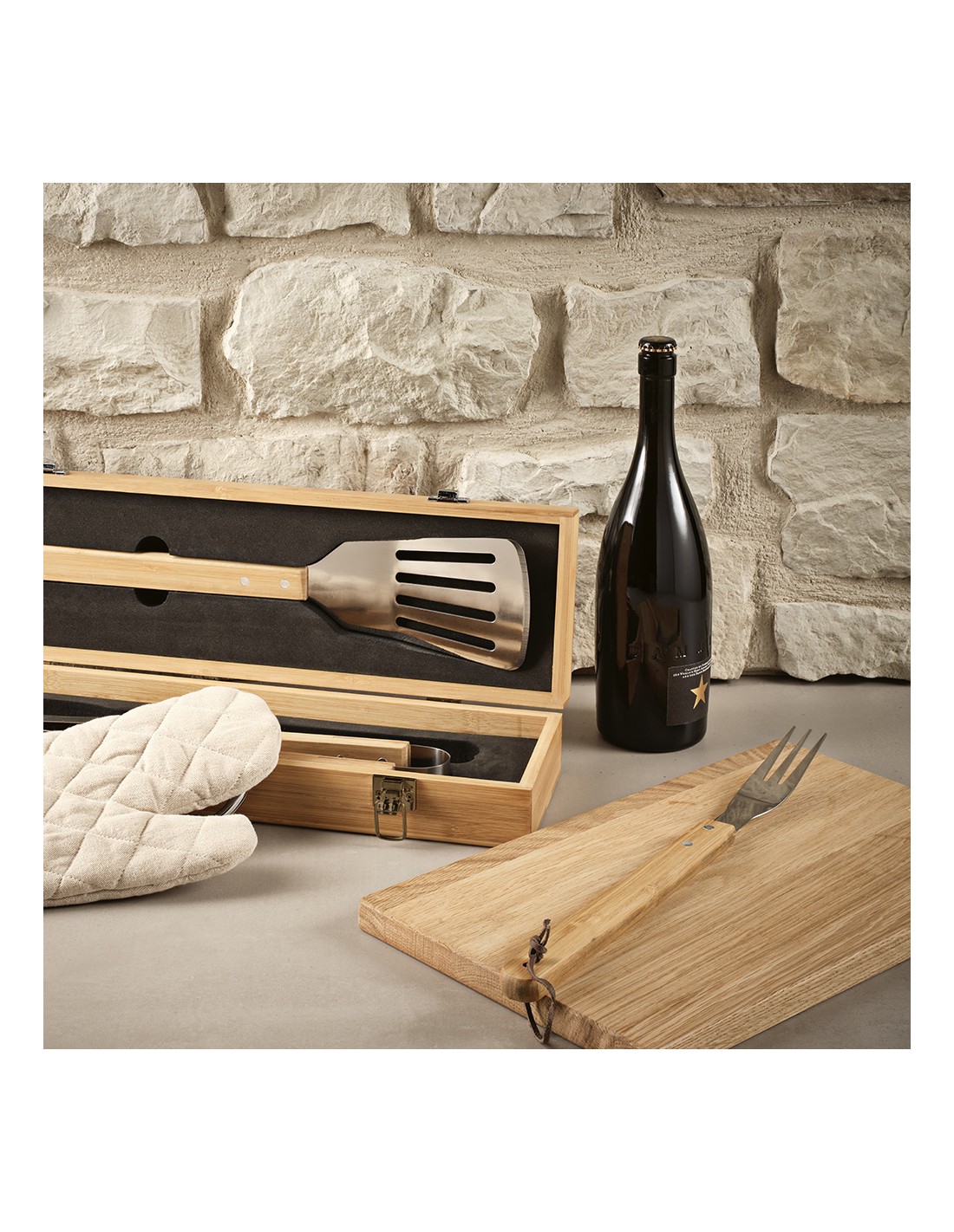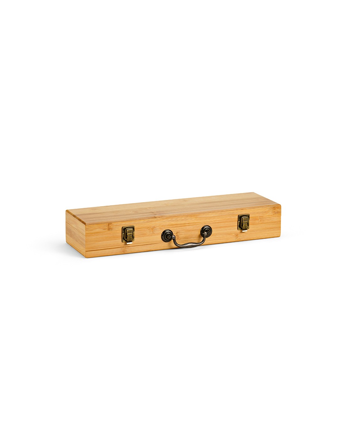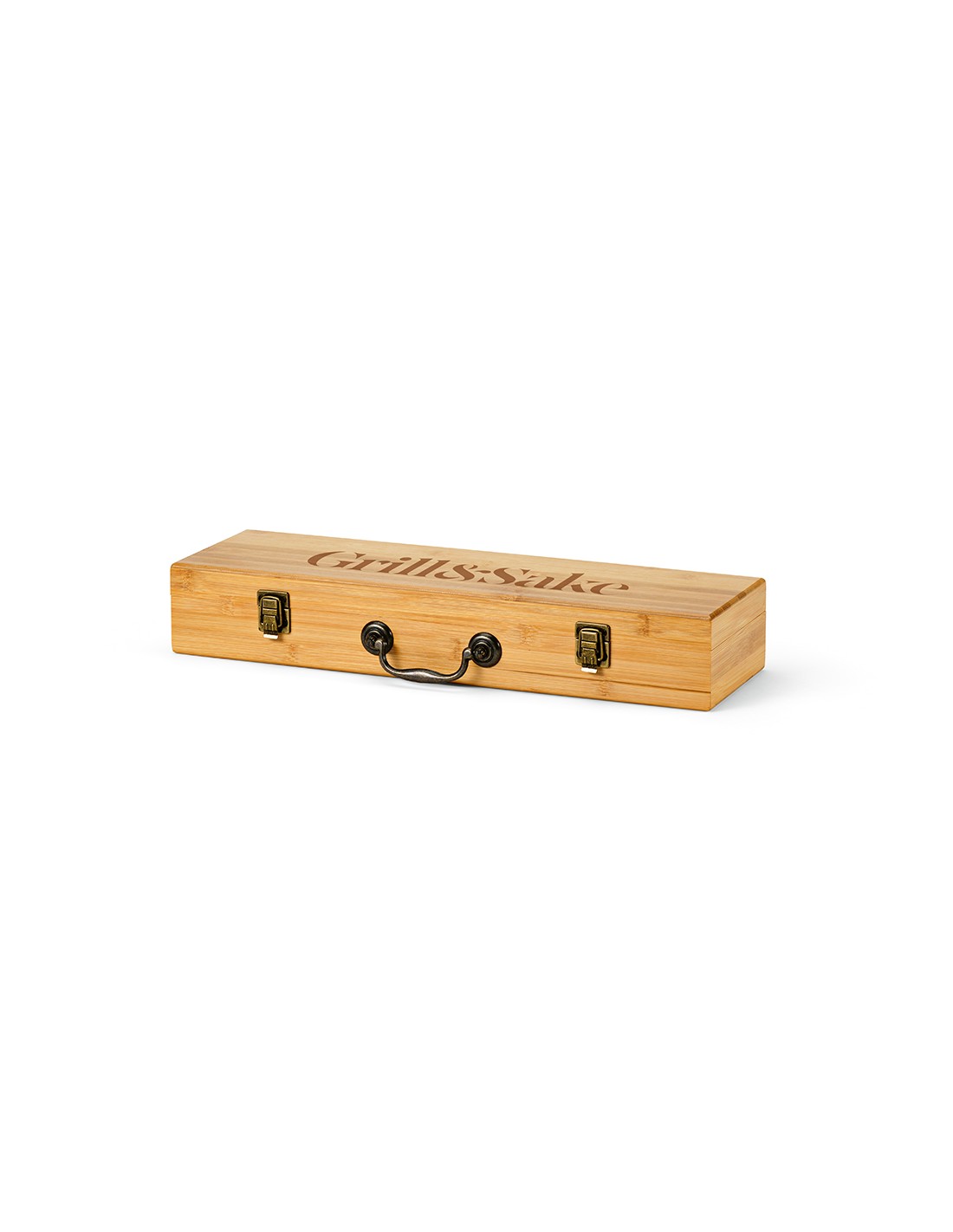 Barbecue portatile in ferro con camino e indicatore di temperatura. Focolare verniciato a polvere nera. Chiusura a chiave e manico per il trasporto in legno.