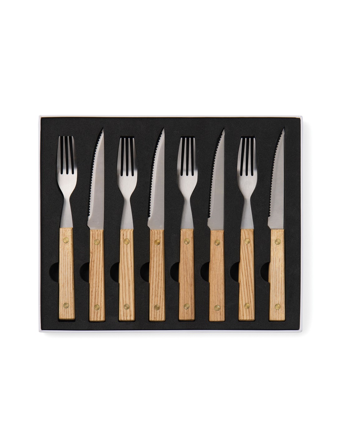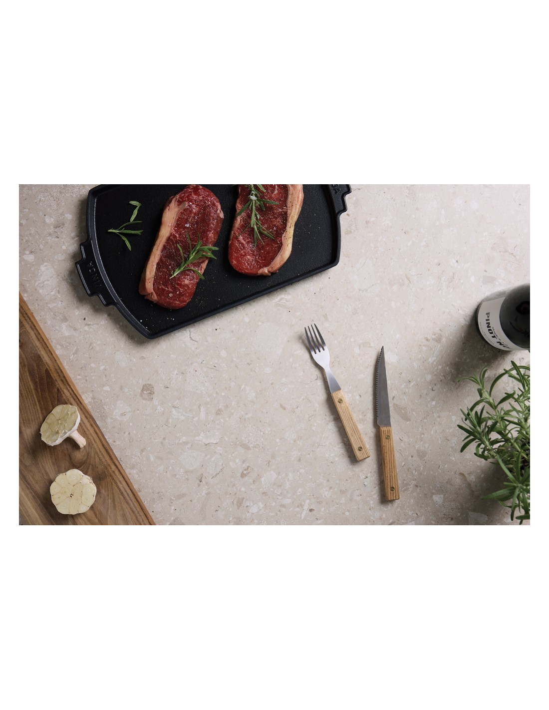 Pinze da barbecue in acciaio inox con impugnature in bamboo. Meccanismo di bloccaggio.