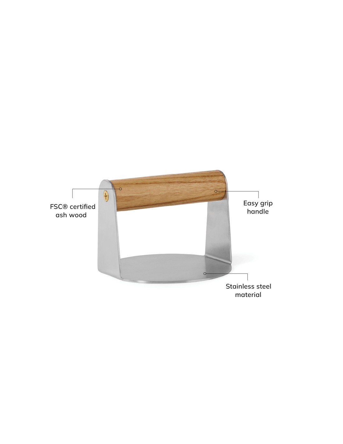 Set di 12 accessori in acciaio inossidabile per il barbecue: 4 spiedini, coltello, 4 ganci per mais, spatola, forchettone e pinze. Confezionato in scatola di alluminio con manico.