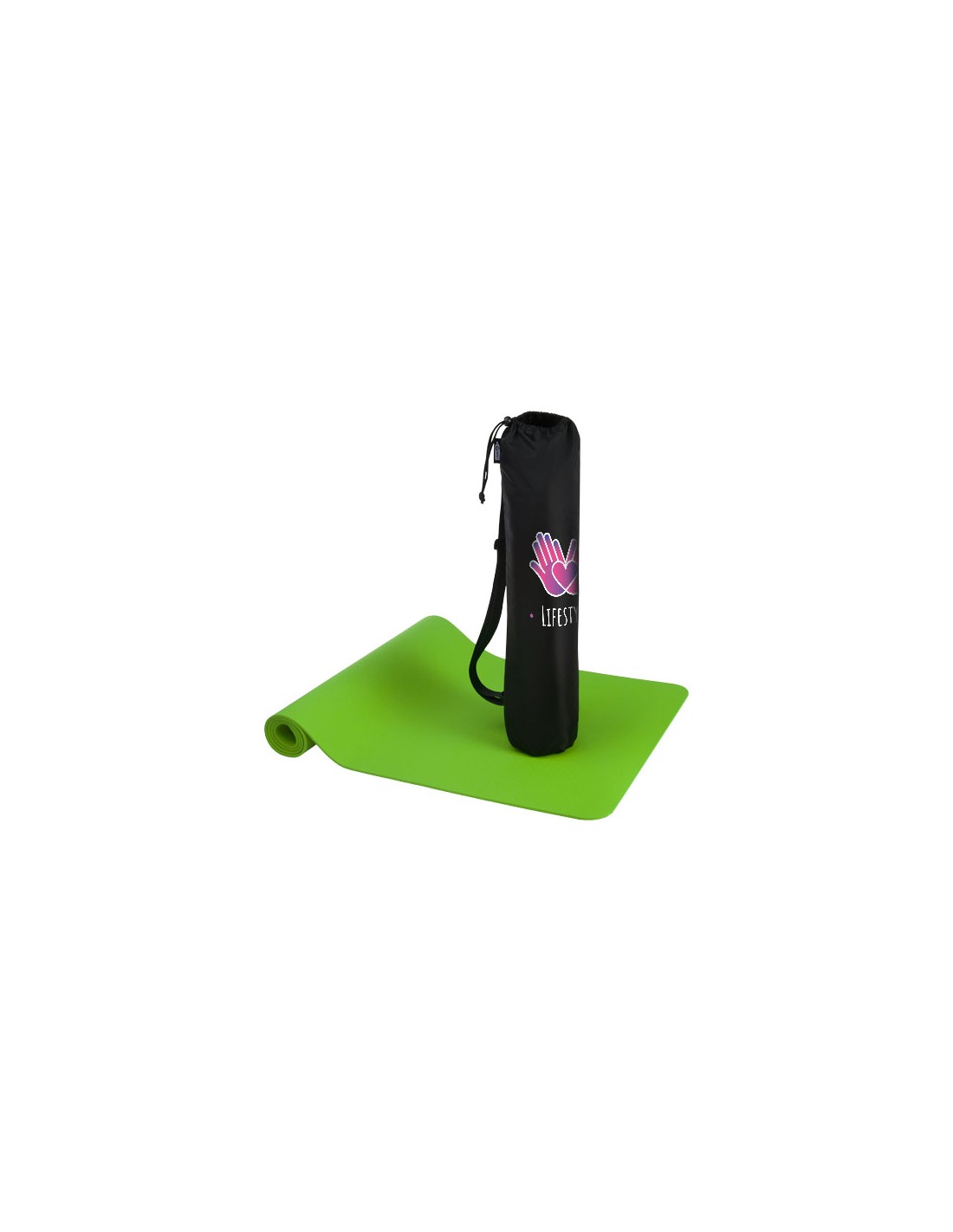 Tappetino per yoga in plastica TPE riciclata. Il TPE ha proprietà antiscivolo naturali che forniscono una superficie stabile per evitare di scivolare durante le sessioni di yoga. Utilizzare i tappetini da yoga in TPE riciclato aiuta a diminuire gli sprechi e promuovere la sostenibilità ambientale riducendo al minimo l'uso di plastica vergine. Dimensione: 173 x 61 x 0,6 cm. La custodia è realizzata in PET riciclato.