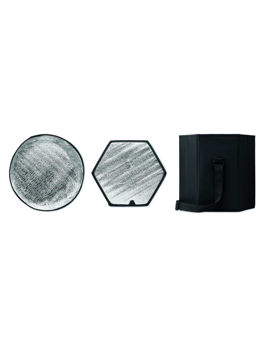 Coperta da picnic pieghevole trapuntata con rivestimento in PEVA plastificato sul retro. Si ripiega in una comoda borsa da trasporto e ha una tracolla regolabile. Ampia tasca laterale anteriore.