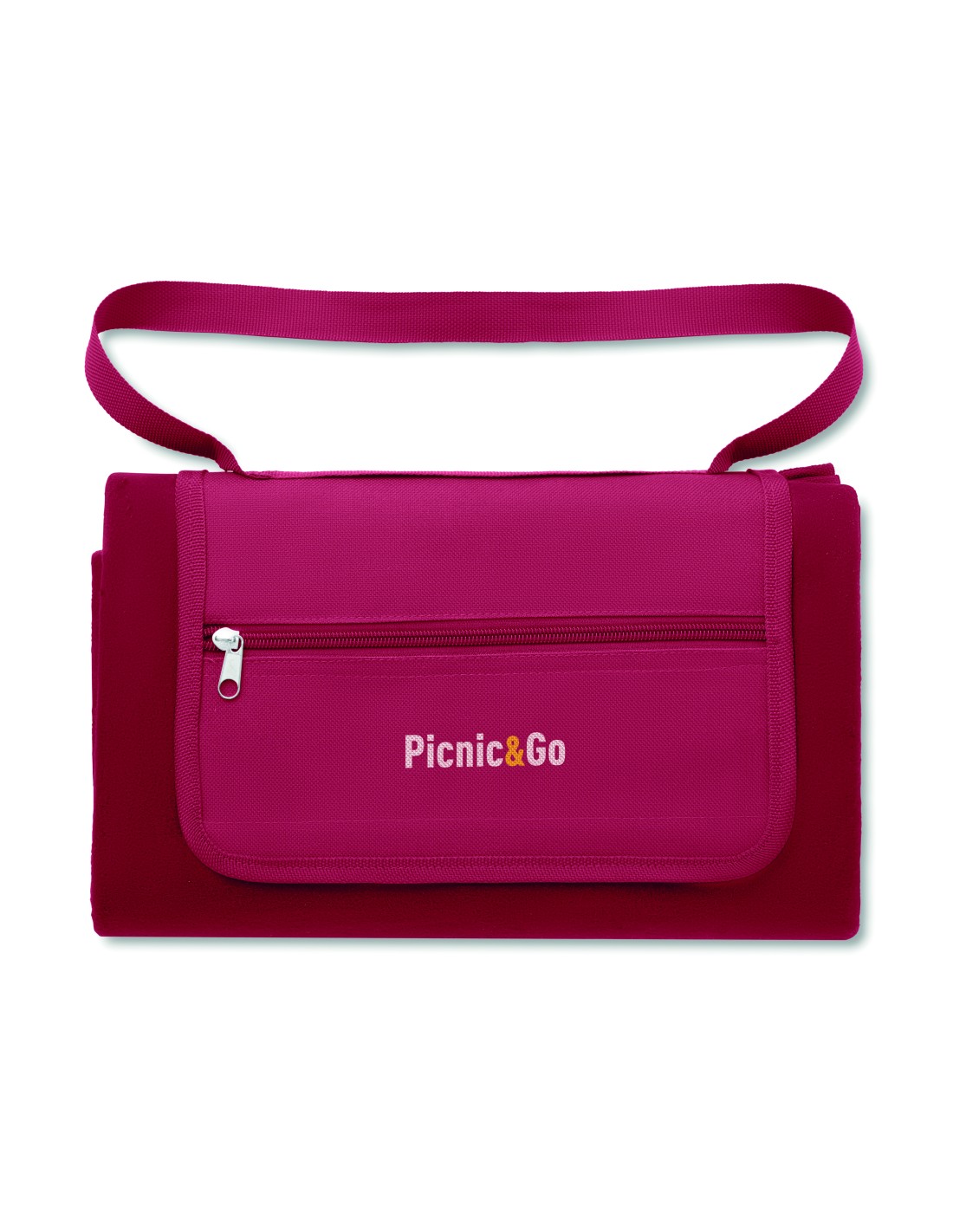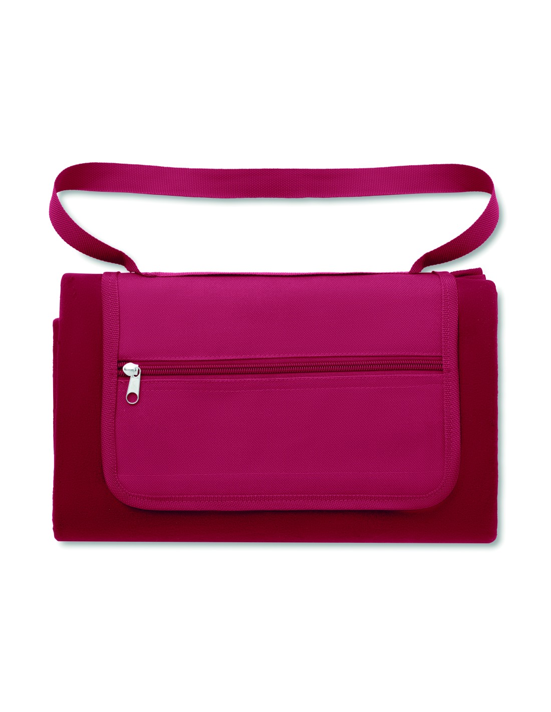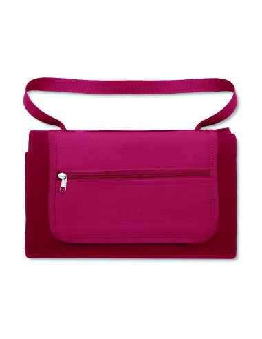 Coperta pieghevole in pile con retro in PEVA rivestito resistente all'acqua.