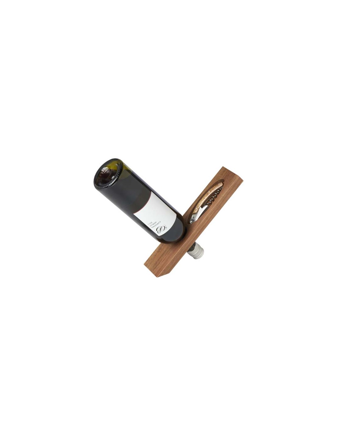 Set porta vino realizzato in legno di acacia. Il set comprende un coltellino da cameriere con cavatappi e tagliacapsule a scomparsa, che funge anche da portabottiglie per il vino. Un regalo perfetto per chi adora il vino.