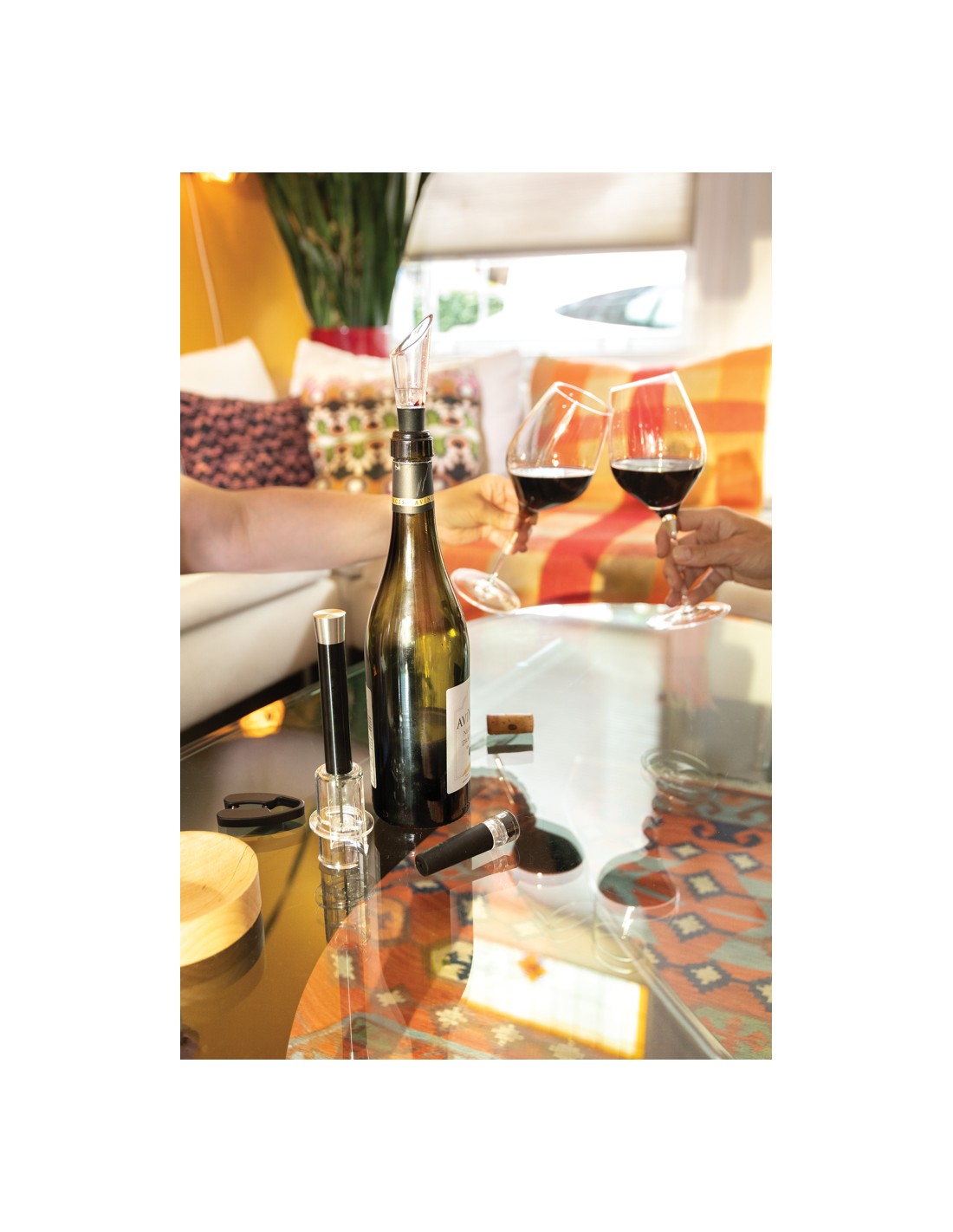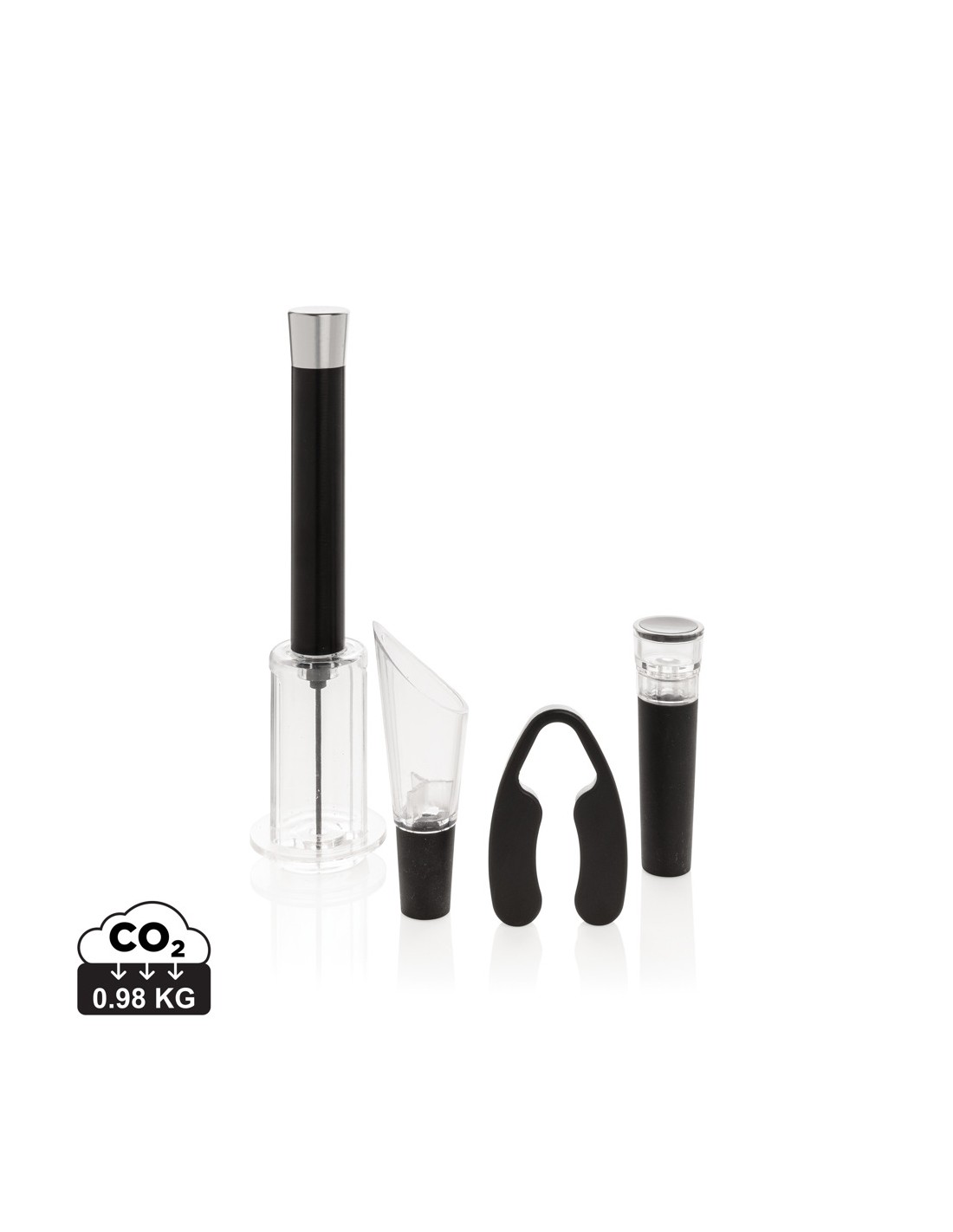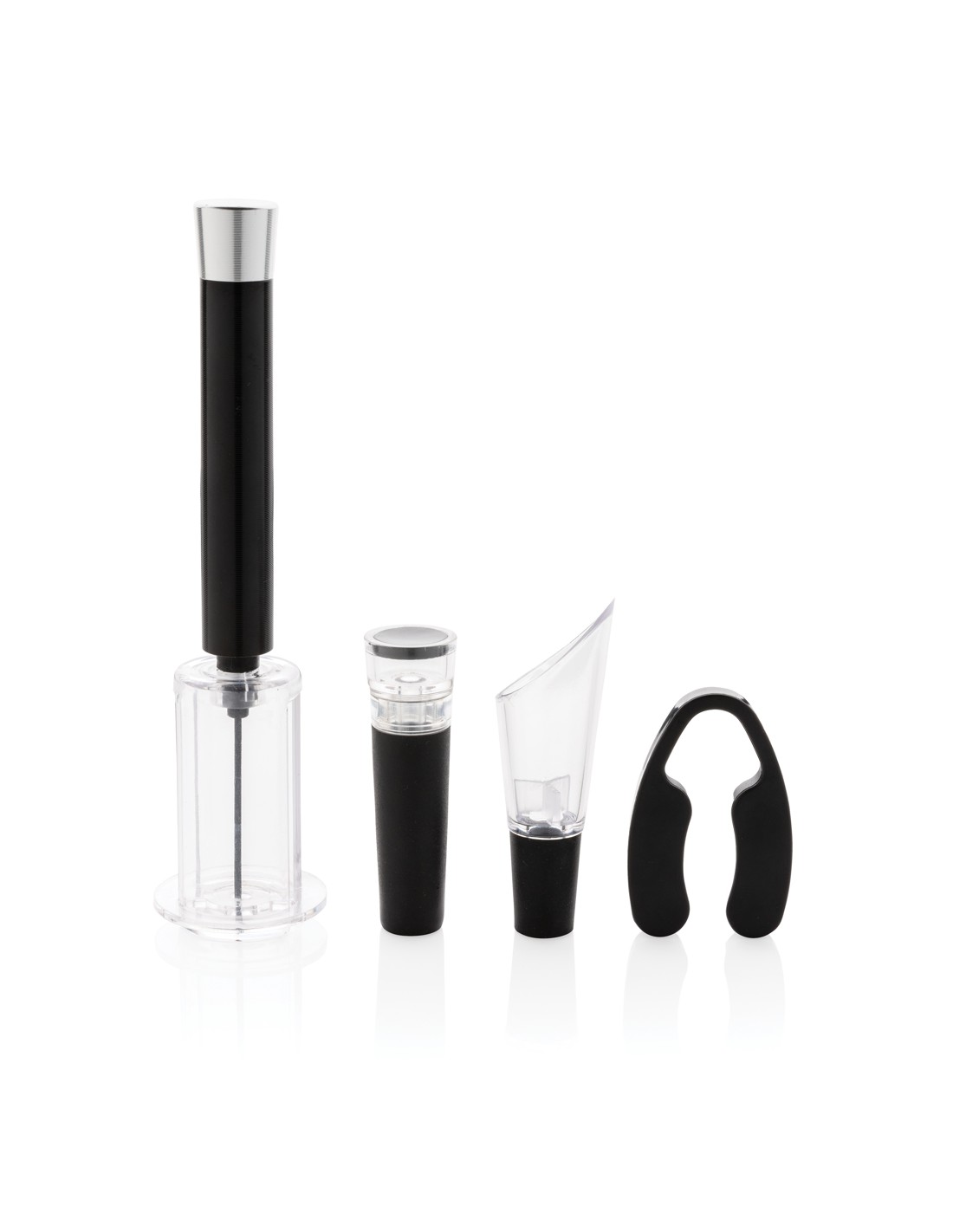 Avere tutto il necessario per aprire, servire e conservare i tuoi vini preferiti con questo set da 4 pezzi. Il set è composto da un apribottiglie con pompa ad aria, leva capsula, tappo per vino con pompa per vuoto e versatore per vino con aeratore. Confezionato in un lussuoso tubo regalo.