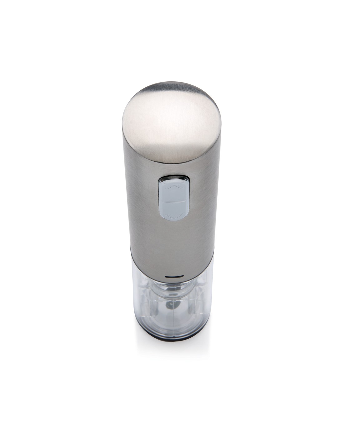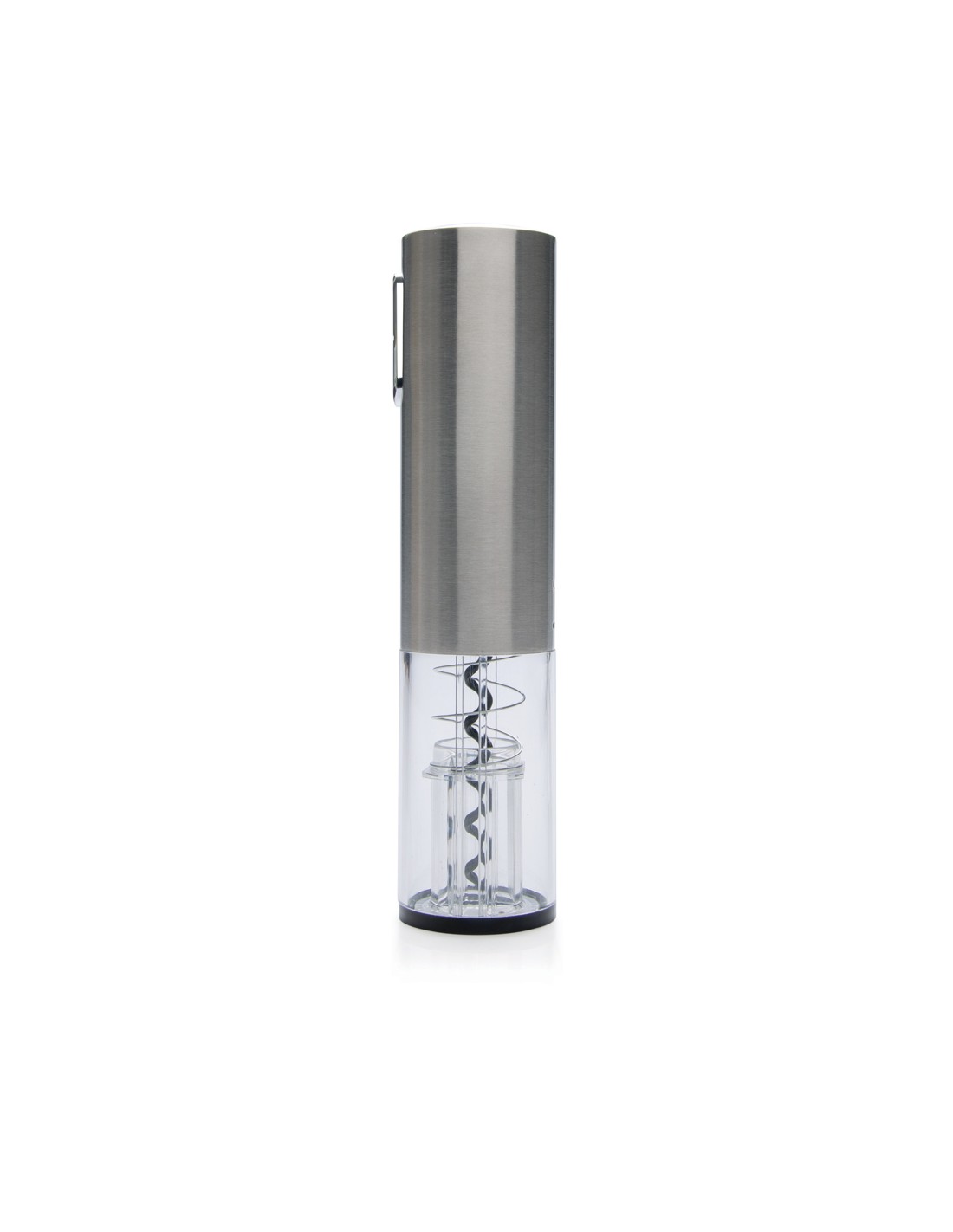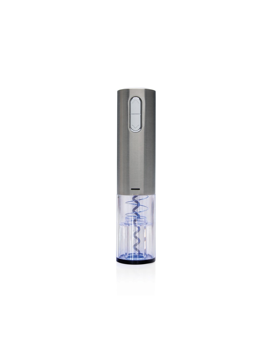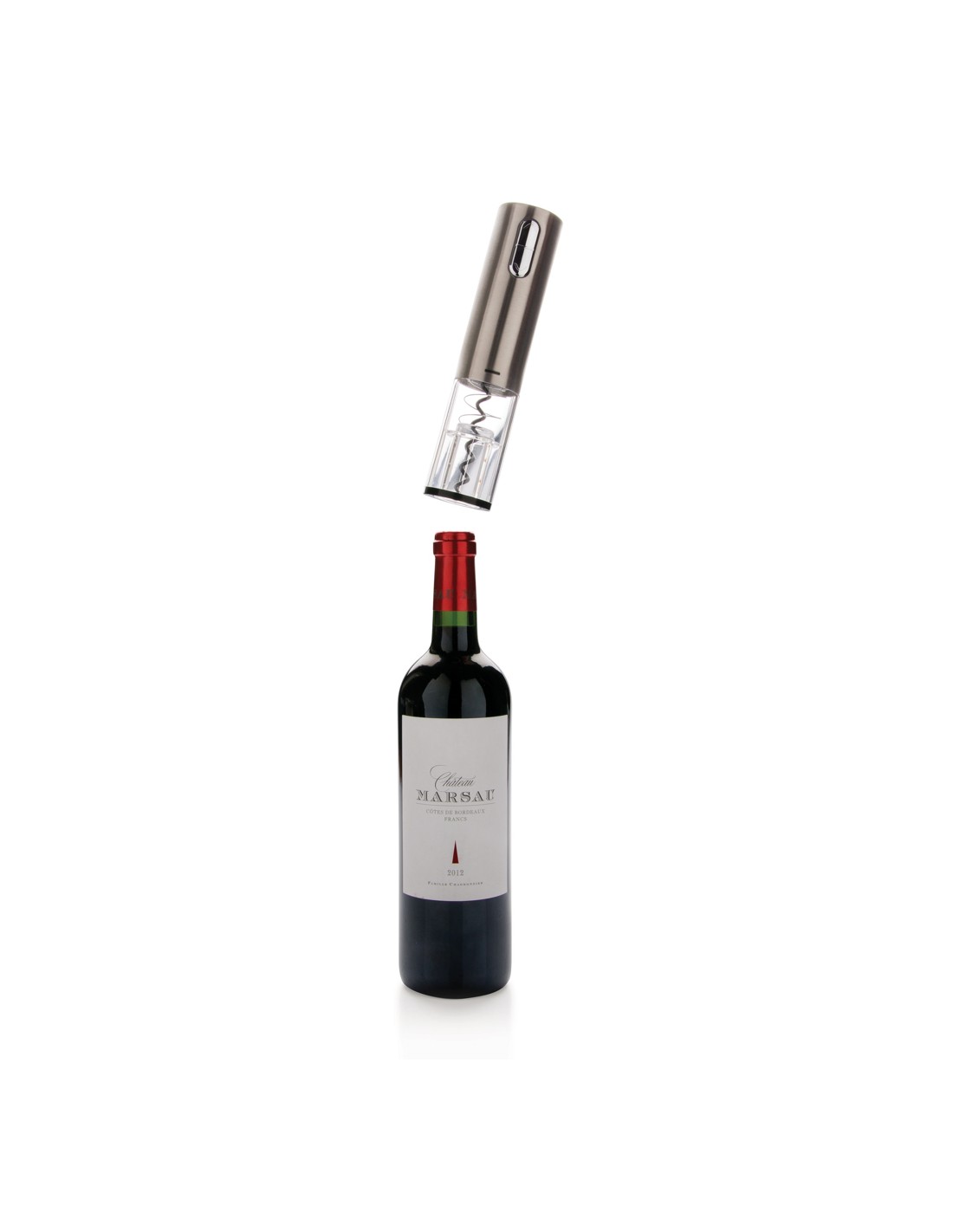 Set vino in confezione a forma di bottiglia con chiusura magnetica. Composto da: apribottiglia, anello salvagoccia e tappo.