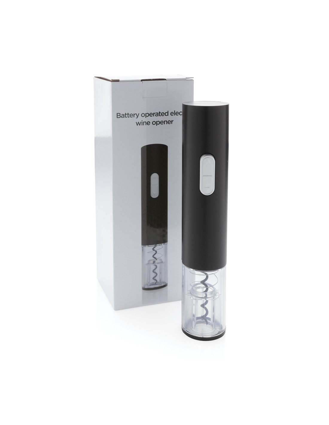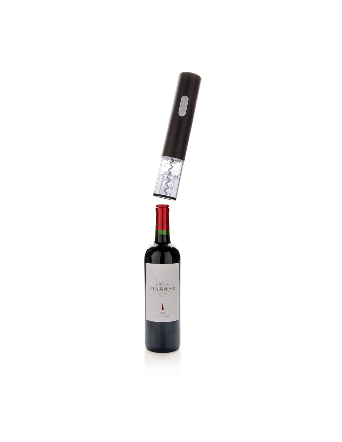 Cavatappi elettrico che apre le tue bottiglie semplicemente premendo il bottone. Include 4 batterie AA. In confezione regalo.