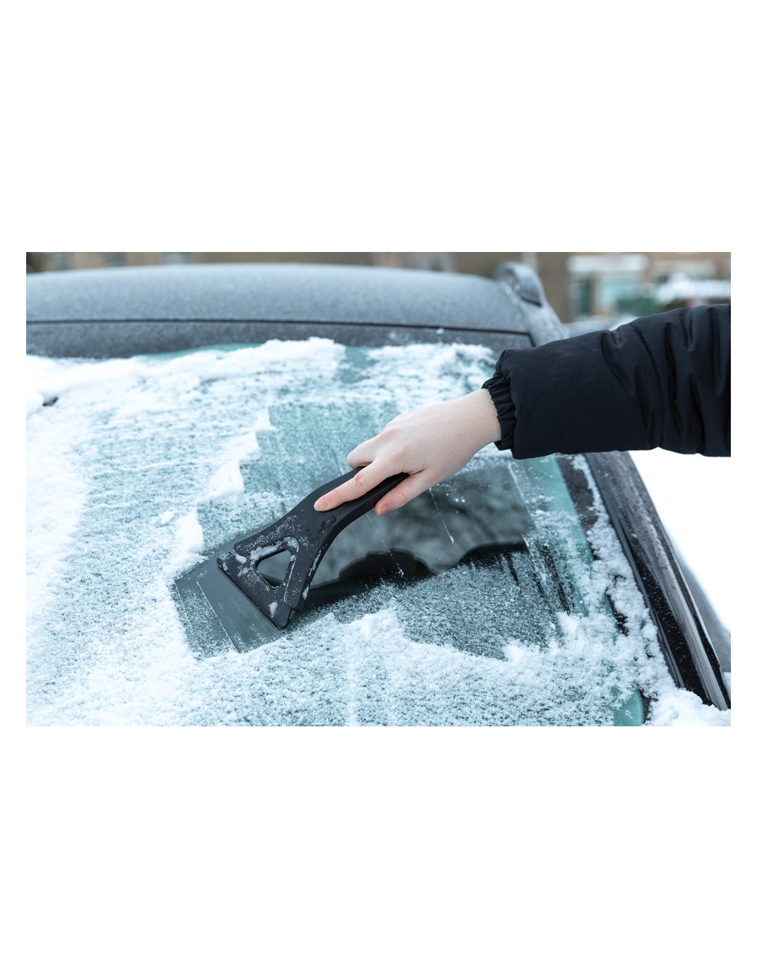 Guanto raschiaghiaccio in plastica con protezione imbottita in materiale sintetico.