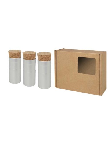 Questo set per giardino da scrivania contiene tre vasi da coltivazione in alluminio spazzolato riciclato. Include innovative palline di semi che germogliano in 1-2 settimane, contenenti un mix di fiori adatto alle api (ginestrino, digitale, trifoglio dei prati, viperina azzurra e maggiorana selvatica). Ogni vaso comprende un tappo di sughero, istruzioni per la coltivazione e dischi di terriccio biologico. Una volta che le piante sono cresciute, il vaso può essere riutilizzato per una nuova pianta, come contenitore oppure può essere riciclato. Fornito in una confezione regalo, che può anche essere stampata. Realizzato in Europa.
