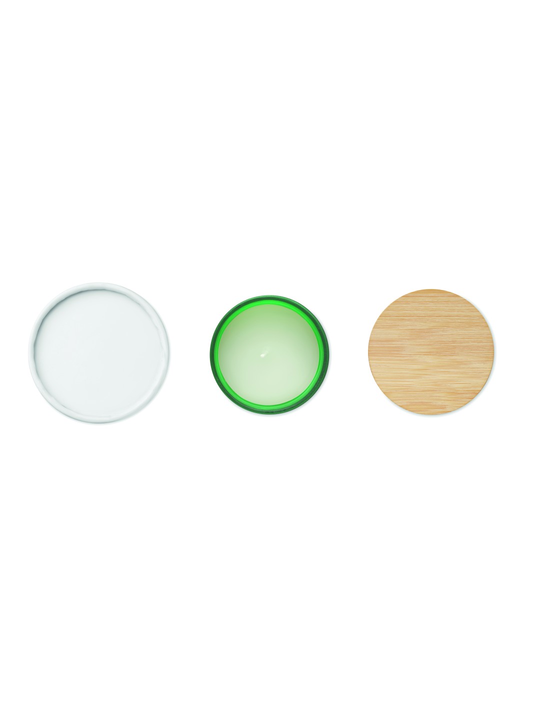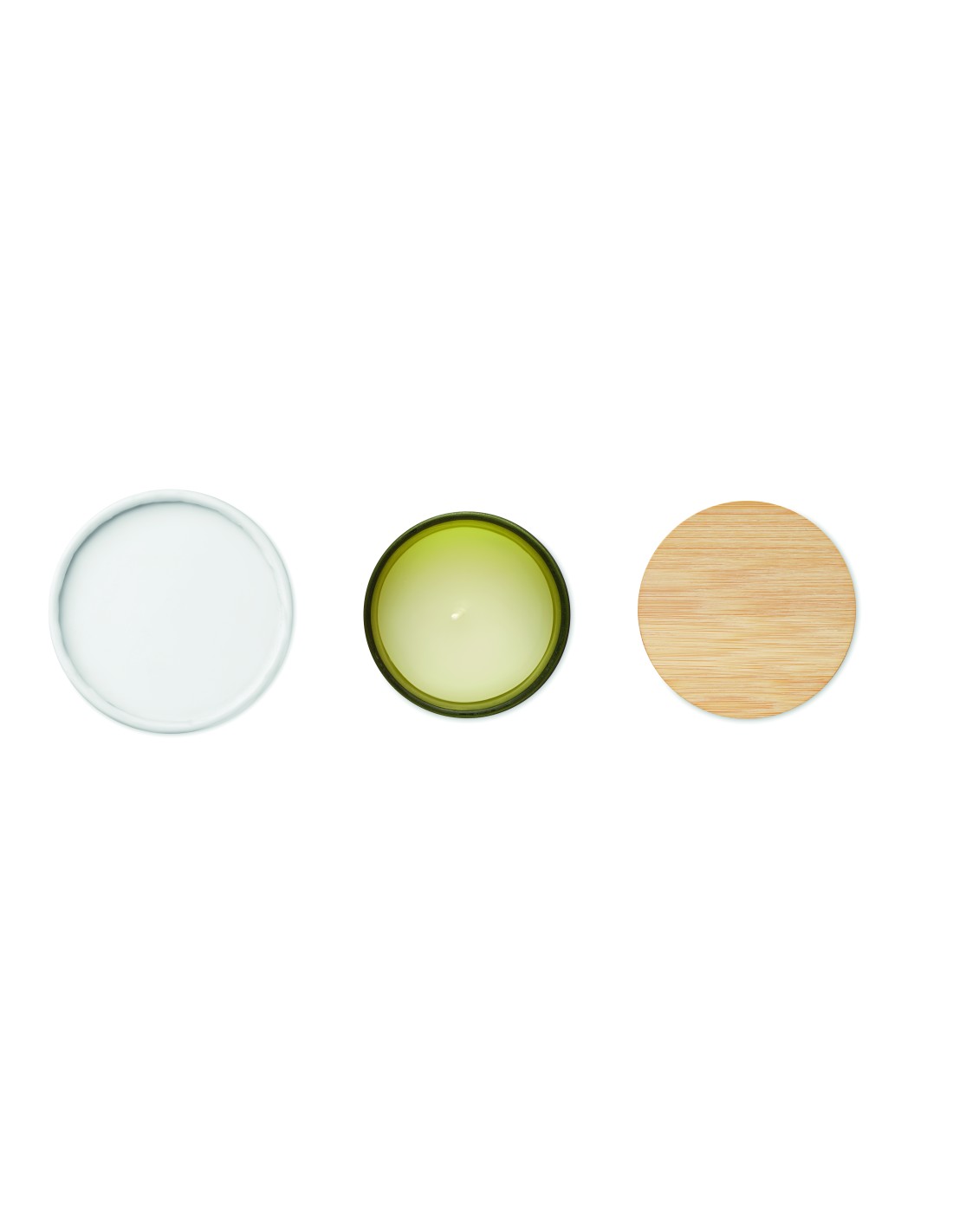 Candela di cera vegetale alla cannella, vaniglia, legno di sandalo o gelsomino in barattolo di vetro opaco con coperchio di bamboo. 200 gr. Durata candela: 33 ore. In scatola regalo in tubo di carta.