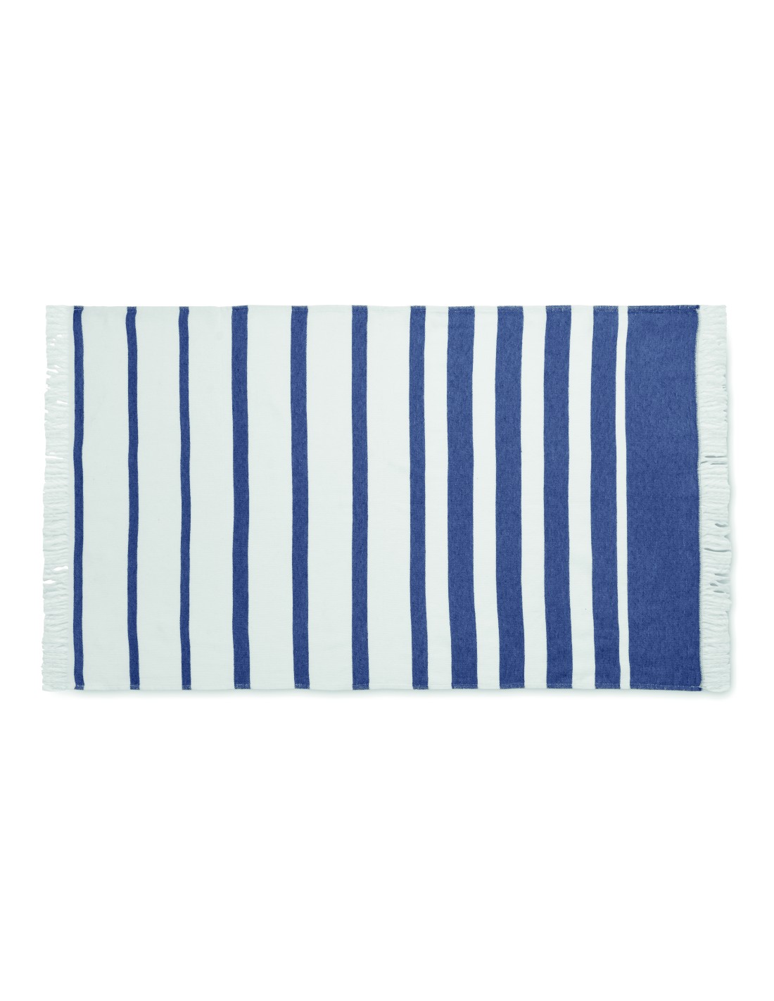 Asciugamano da hammam o da spiaggia in tessuto riciclato. 70% cotone riciclato e 30% poliestere riciclato SEAQUAL® YARN. 300 gr/m². 100x170 cm. L'INIZIATIVA SEAQUAL lavora con i centri di pulizia degli oceani di tutto il mondo per dare valore ai rifiuti che che recuperano. Prodotto in UE.
