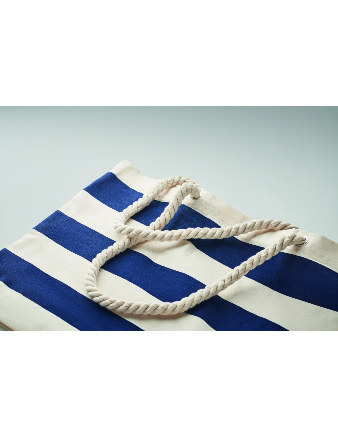 Shopper o borsa da spiaggia in iuta laminata con manico in cotone. Manici corti. Questo prodotto è certificato OEKO-TEX® STANDARD 100.