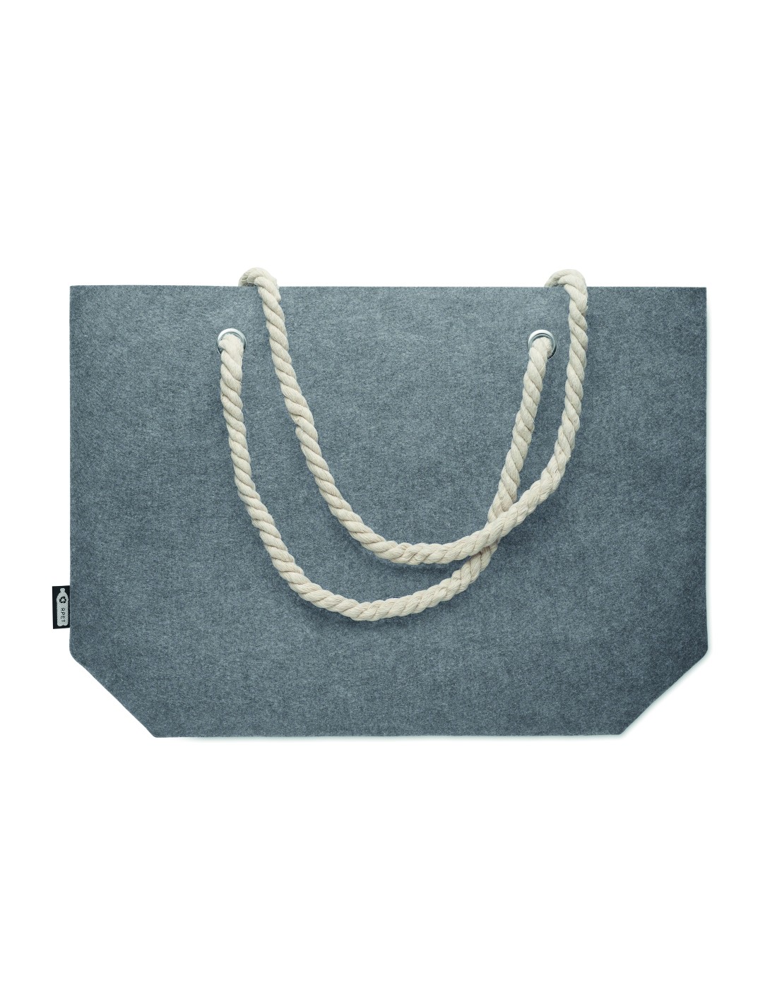 Shopper o borsa da spiaggia in iuta laminata con manico in cotone. Manici corti.