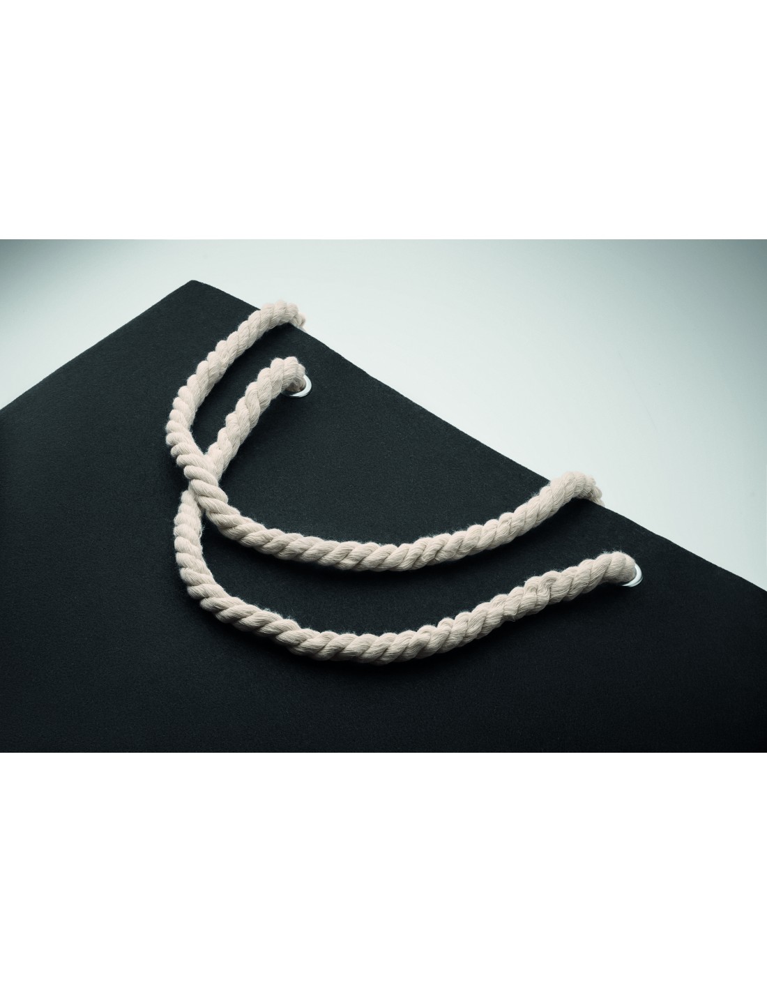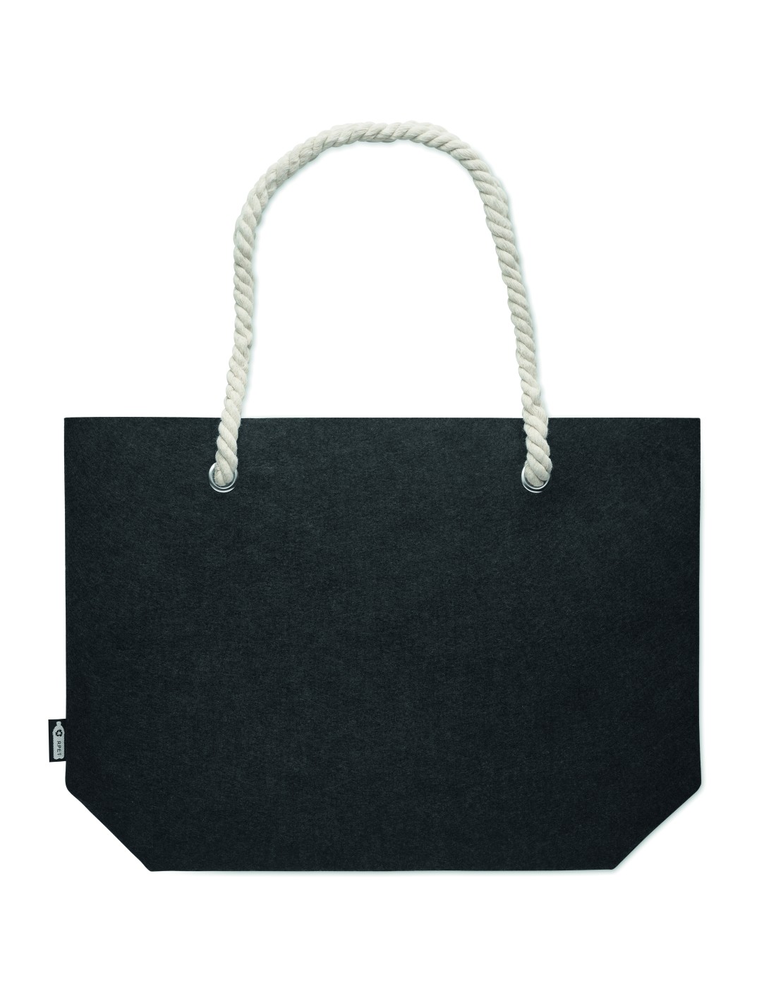 Shopper o borsa da spiaggia in iuta laminata con manico in cotone. Manici corti.