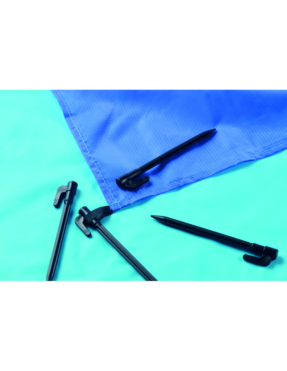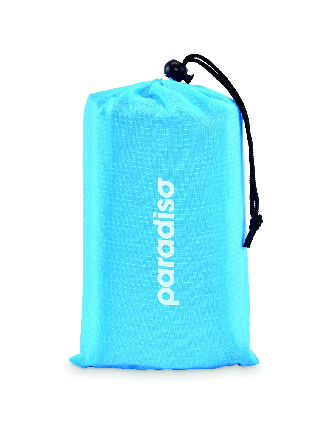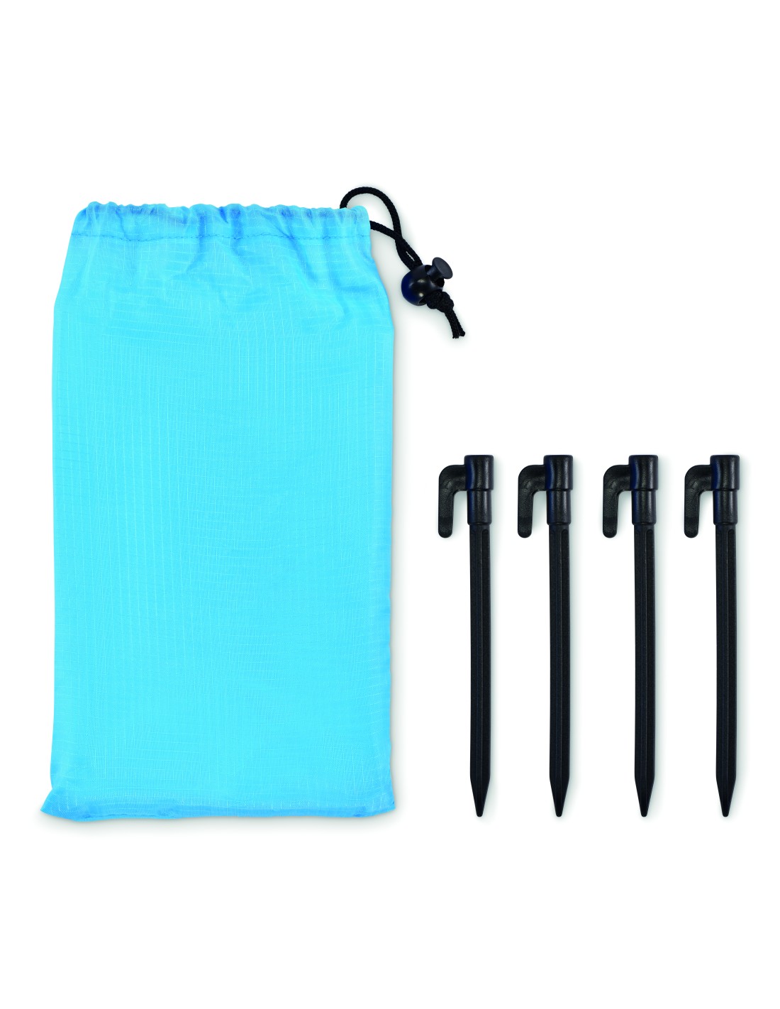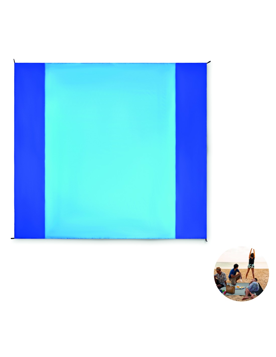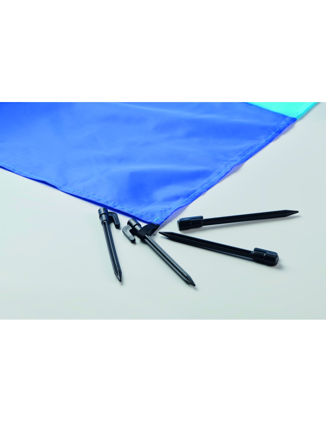 Stuoia da spiaggia leggera in poliestere 210T di 200x210 cm. Include 4 ganci neri e una sacca per un facile trasporto.