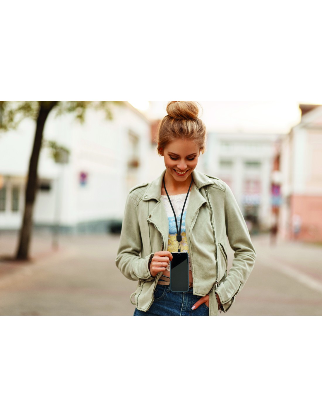 Porta telefono da braccio regolabile in neoprene con frontale trasparente e dettaglio riflettente. Adatto a telefoni con schermo fino a 6,5 pollici.