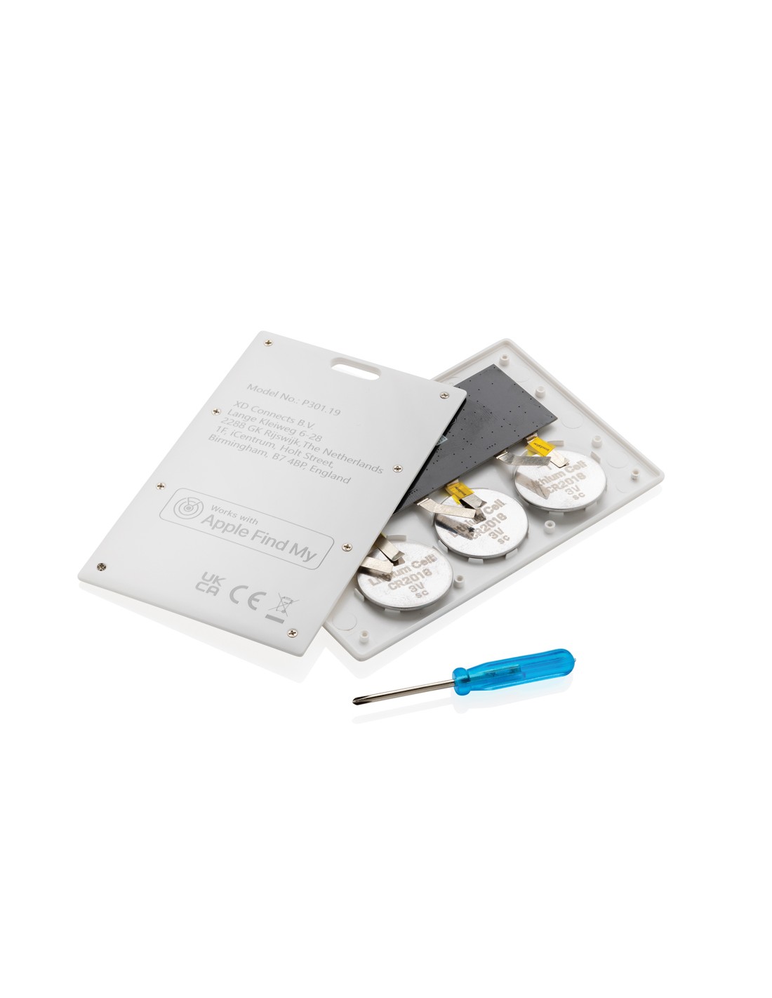 Localizzatore intelligente 5.2 wireless in ABS. con cinturino portachiavi. Raggio di localizzazione: 20 m. Richiede un'applicazione gratuita (Find my® disponibile per iOS). In dotazione 1 batteria CR2032.