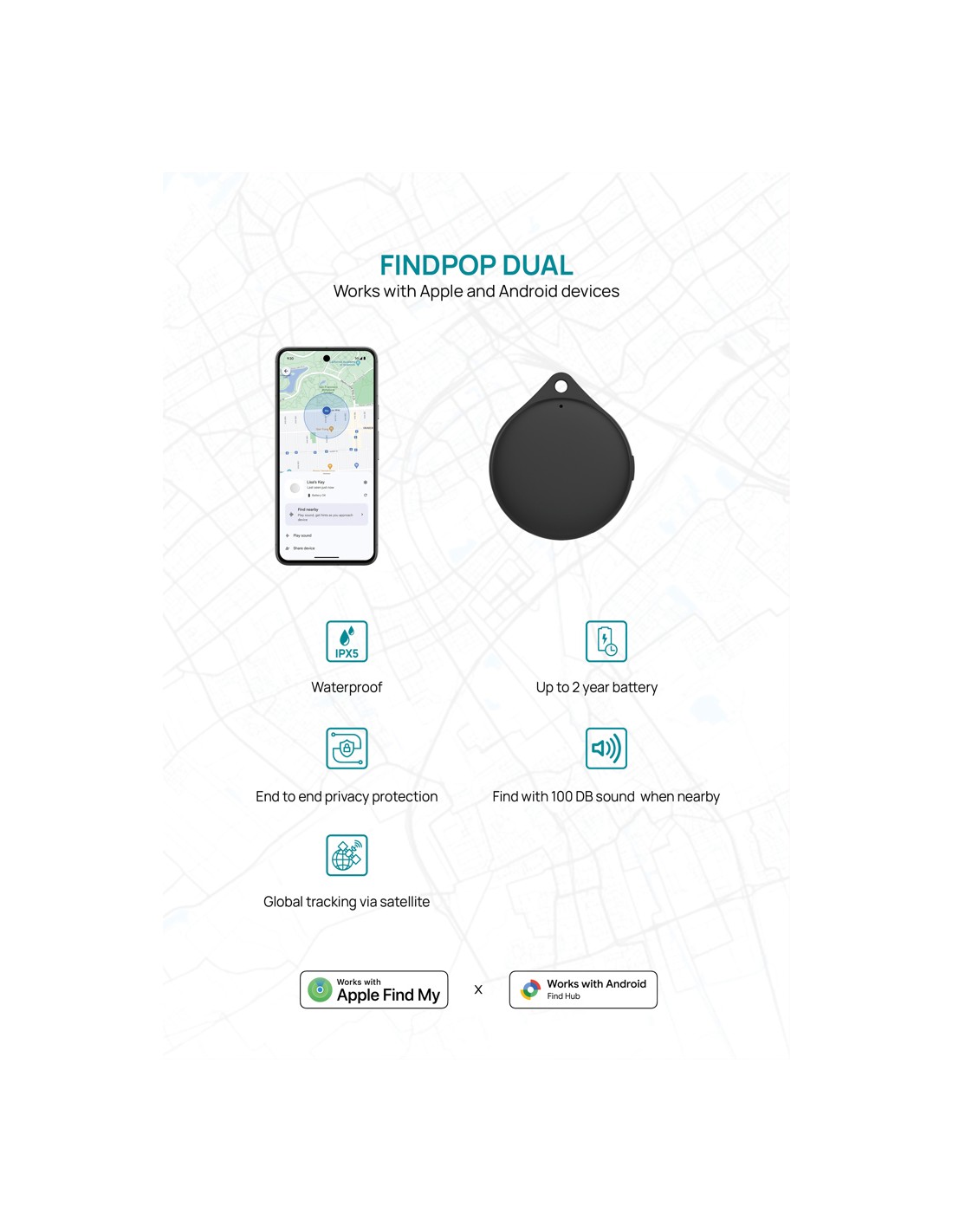 Trova tutto, indipendentemente dal telefono che utilizzi! Findmate Dual è un localizzatore in ABS riciclato che funziona sia con la rete Find My di Apple che con quella Find Hub di Android. Grazie alla crittografia end-to-end fornita da Apple e Google, i tuoi dati di localizzazione sono al...