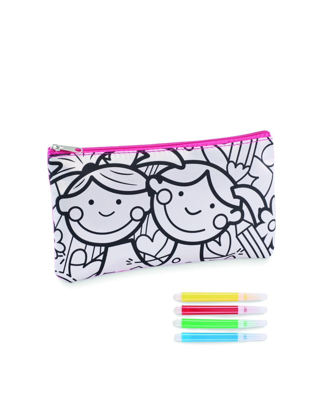 Astuccio per matite da colorare in poliestere 600D con 4 pennarelli.