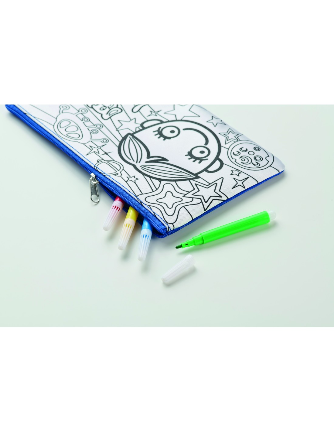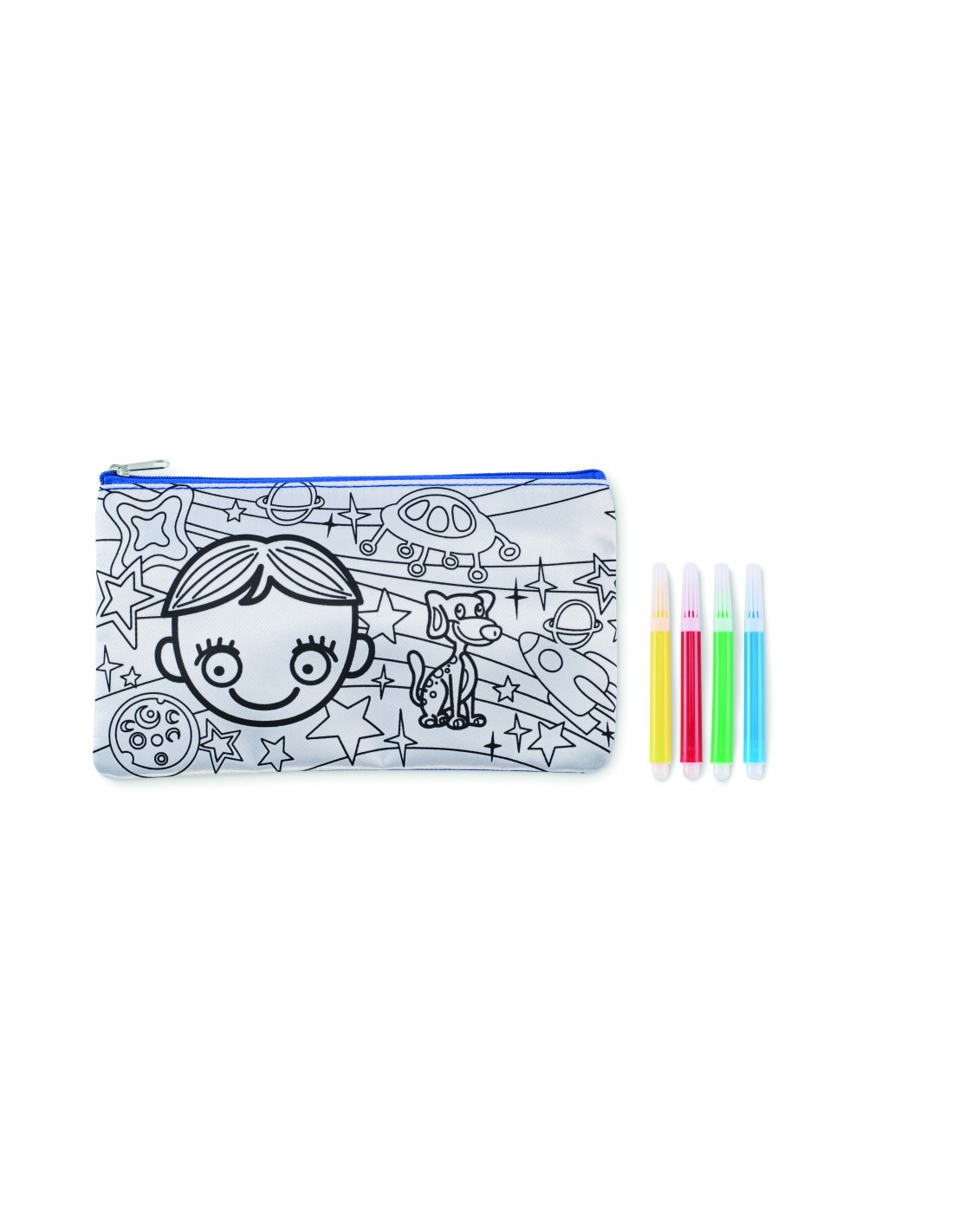 Astuccio per matite da colorare in poliestere 600D con 4 pennarelli.