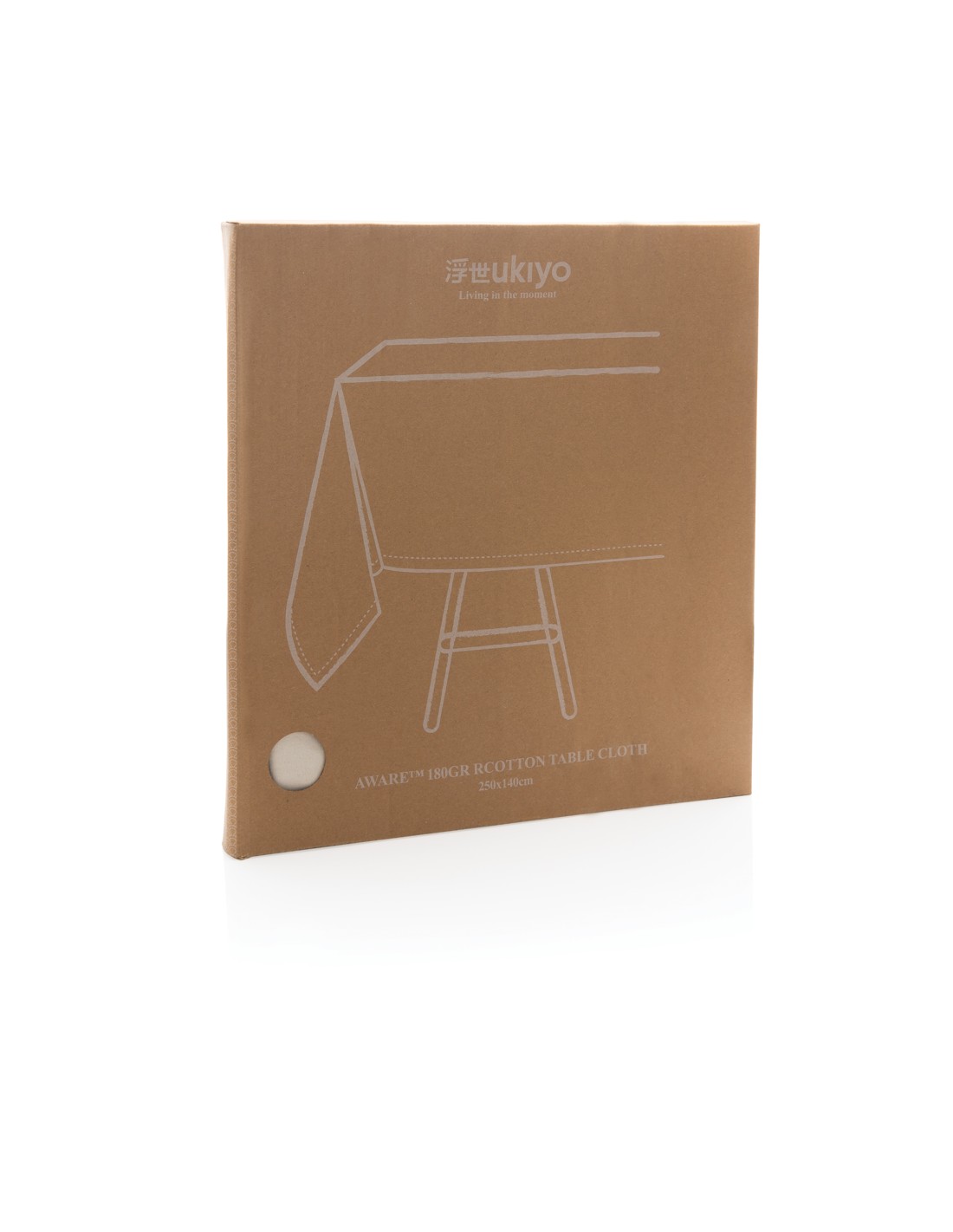 Apparecchia la tua tavola per tutte le occasioni speciali con la tovaglia in cotone Ukiyo Aware™ 180gr. Il design neutro si coordina perfettamente ad ogni ambiente. Dimensioni 250x140 cm. Con tracciante Aware™ che convalida l'uso reale di materiali riciclati. Il 2% del ricavato di ogni prodotto venduto contenente AWARE™ sarà devoluto a Water.org.