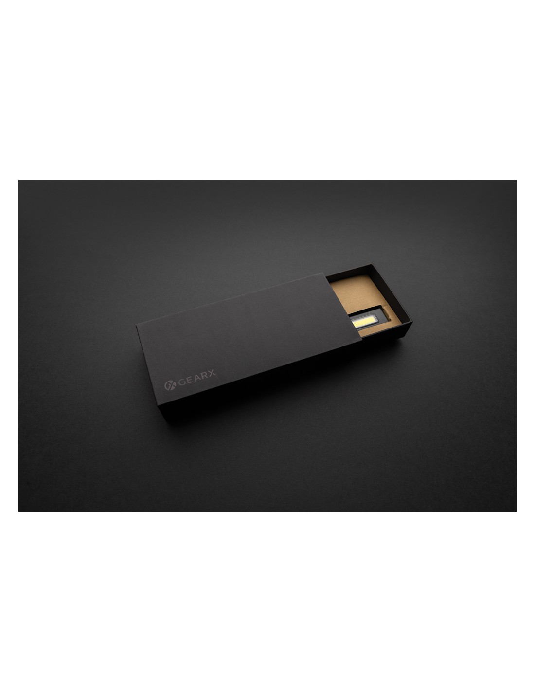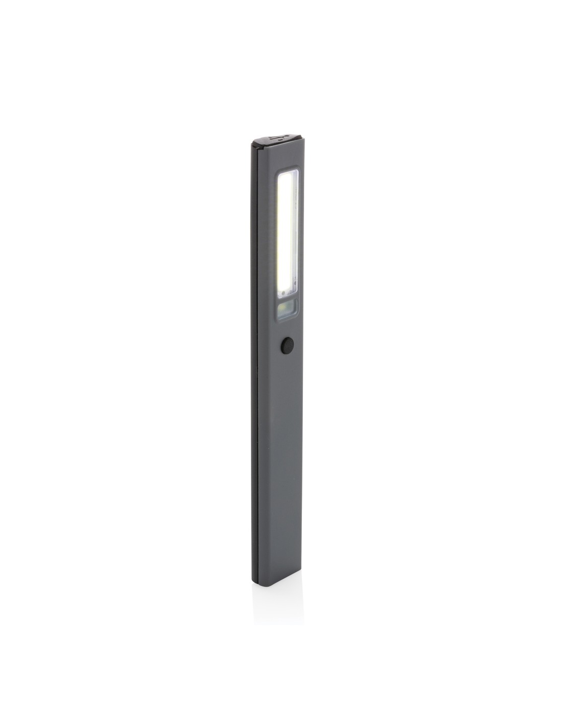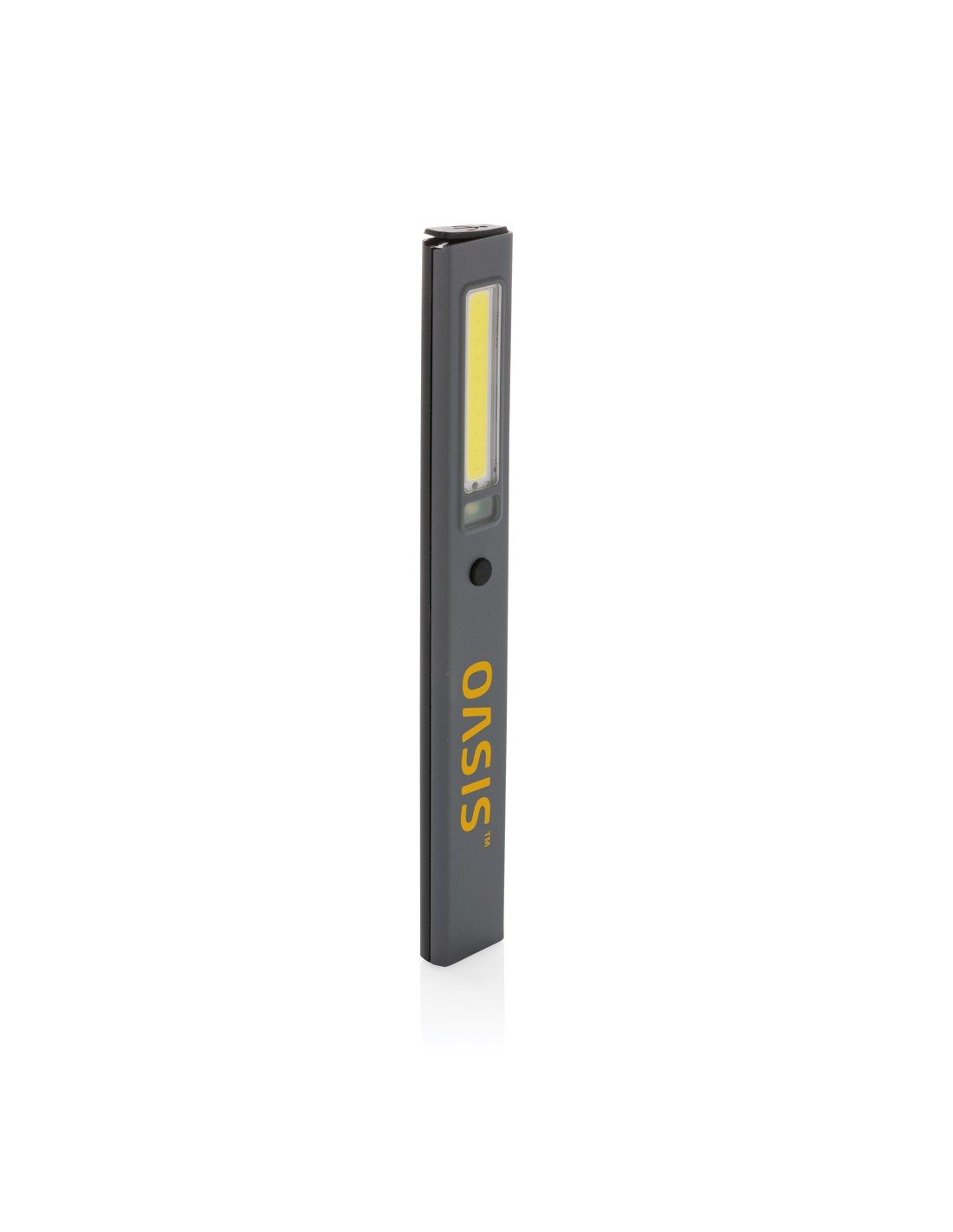 Luce da ispezione tascabile realizzata con plastica ABS riciclata certificata RCS. Contenuto riciclato totale: 33% in base al peso totale dell'articolo. La certificazione RCS garantisce una filiera completamente certificata dei materiali riciclati. La lampada da lavoro utilizza una batteria al litio ricaricabile di grado A da 520 mAh per cui non è necessario sostituire le batterie. È sufficiente ricaricarla tramite la presa USB e la base di ricarica inclusa. La lampada da lavoro è dotata di luce COB da 220 lumen e di una luce LED da 80 lumen. Con 3 modalità: LED, COB e COB rosso. Include clip per cintura e magnete. Con porta Type-C per la ricarica. Autonomia con una carica: 3 ore.