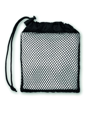 Asciugamano sport in sacca a rete, 20% poliamide e 80% in microfibra.