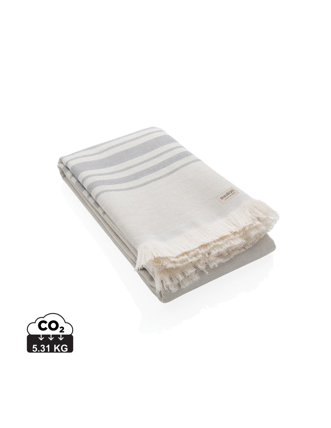 Questo telo leggero, altamente assorbente, resistente alla sabbia e ad asciugatura rapida è uno dei migliori teli sostenibili in circolazione. I teli Hammam sono multifunzionali: puoi anche usarli per i picnic, come coperta per bambini o come asciugamano per yoga, spiaggia e palestra. Anche come tovaglia. La cosa migliore è che il materiale sottile lo rende ultra portatile e facile da mettere nella borsa da spiaggia, nella valigia o sulla spalla. È realizzato con IL 12% di cotone riciclato, estremamente morbido e setoso al tatto. Grazie alle particelle traccianti AWARE™ l'uso genuino di cotone riciclato è garantito. Ogni telo consente di risparmiare 597,8 litri di acqua. Il 2% del ricavato di ogni prodotto Impact venduto sarà devoluto a Water.org. Prodotto in Portogallo.