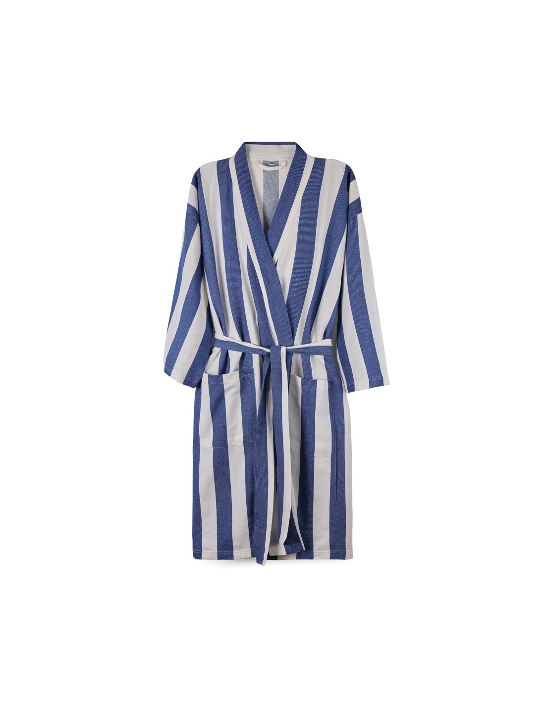 Portate questo morbido e confortevole accappatoio da hamam in spiaggia o semplicemente godetevelo a casa. Realizzato in un misto leggero e arioso da 200 g/m², combina il comfort del cotone con i vantaggi dell'asciugatura rapida del poliestere. Disegnato in stile classico con una fantasia a righe bicolore, presenta un colletto elegante, tasche anteriori, maniche a 3/4 e una cintura in vita per una vestibilità perfetta. La certificazione GRS (Global Recycled Standard) garantisce che l'intera catena di approvvigionamento dei materiali riciclati sia certificata. Il contenuto totale di materiale riciclato si basa sul peso complessivo del prodotto. Questo prodotto contiene il 69% di cotone riciclato e il 29% di poliestere riciclato certificato GRS.