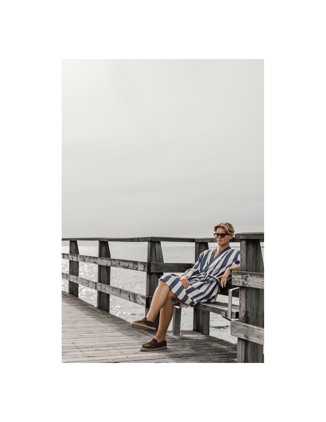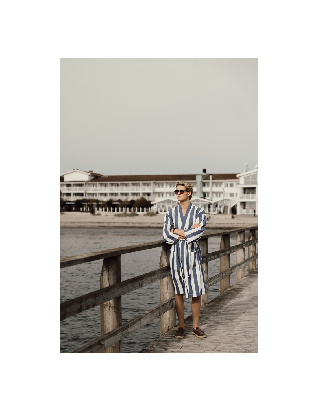 Portate questo morbido e confortevole accappatoio da hamam in spiaggia o semplicemente godetevelo a casa. Realizzato in un misto leggero e arioso da 200 g/m², combina il comfort del cotone con i vantaggi dell'asciugatura rapida del poliestere. Disegnato in stile classico con una fantasia a righe...