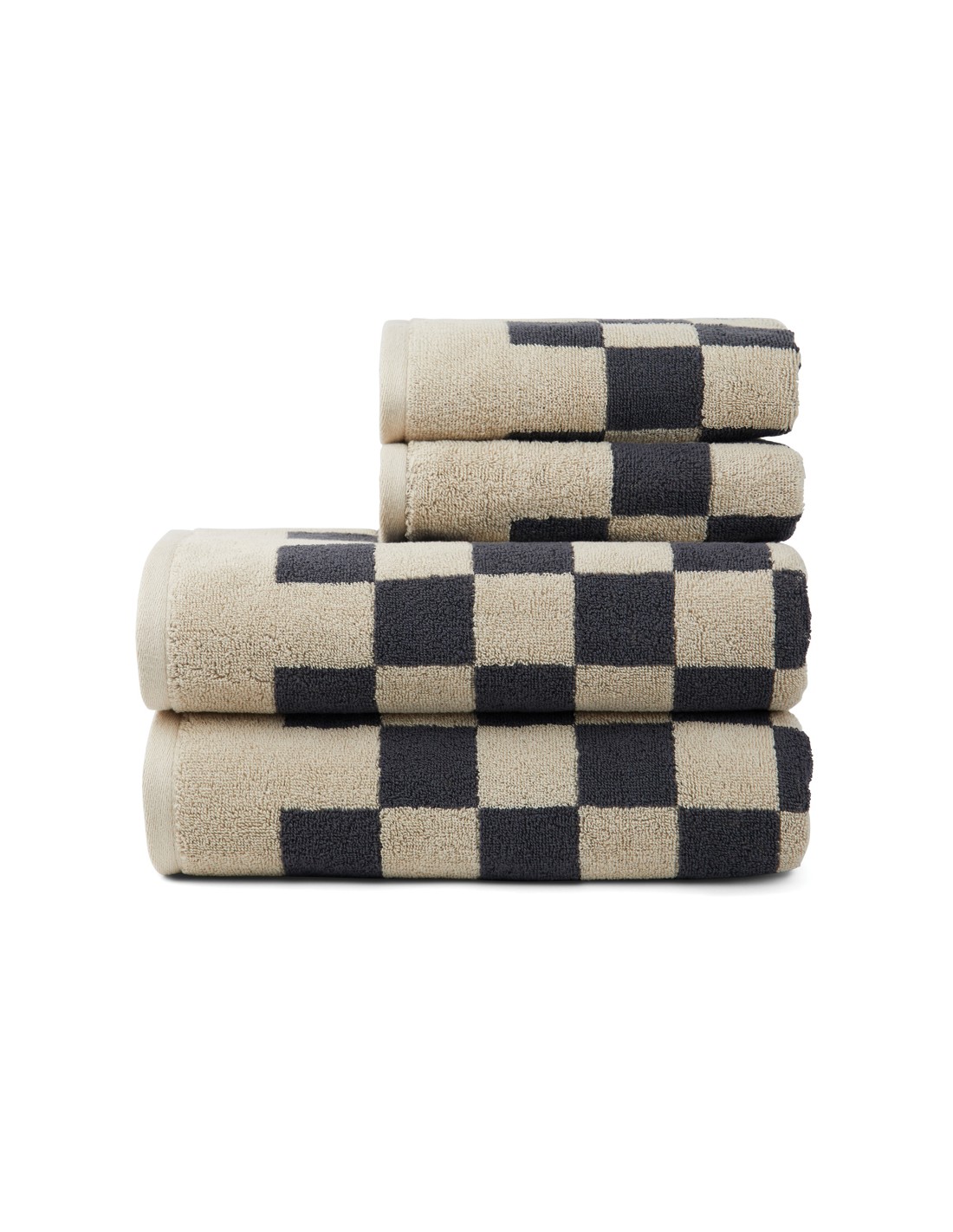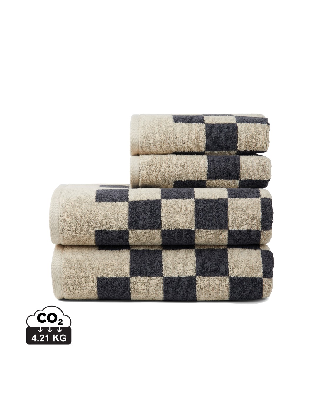 Provate il mix perfetto di stile, comfort e morbidezza con questi bellissimi asciugamani. Questo set offre morbidezza e funzionalità eccezionali. Con un peso di 500 g/m², questi asciugamani offrono una buona assorbenza e morbidezza. Il disegno contemporaneo a scacchiera aggiunge raffinatezza all'arredamento del bagno. Il set comprende due asciugamani grandi (135x165 cm) e due asciugamani più piccoli (65x40 cm). Ogni set è splendidamente confezionato in un imballaggio Kraft certificato FSC®. L'Organic Content Standard (OCS) verifica e traccia il materiale organico dalla fonte al prodotto finito. Questo prodotto contiene il 99% di cotone biologico certificato OCS.