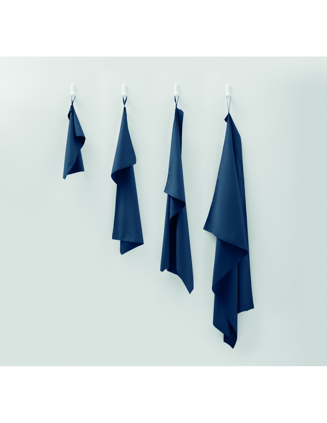 Asciugamano in microfibra realizzato al 90% in poliestere e al 10% in poliammide con anello elastico per appenderlo. Leggero e ad asciugatura rapida.