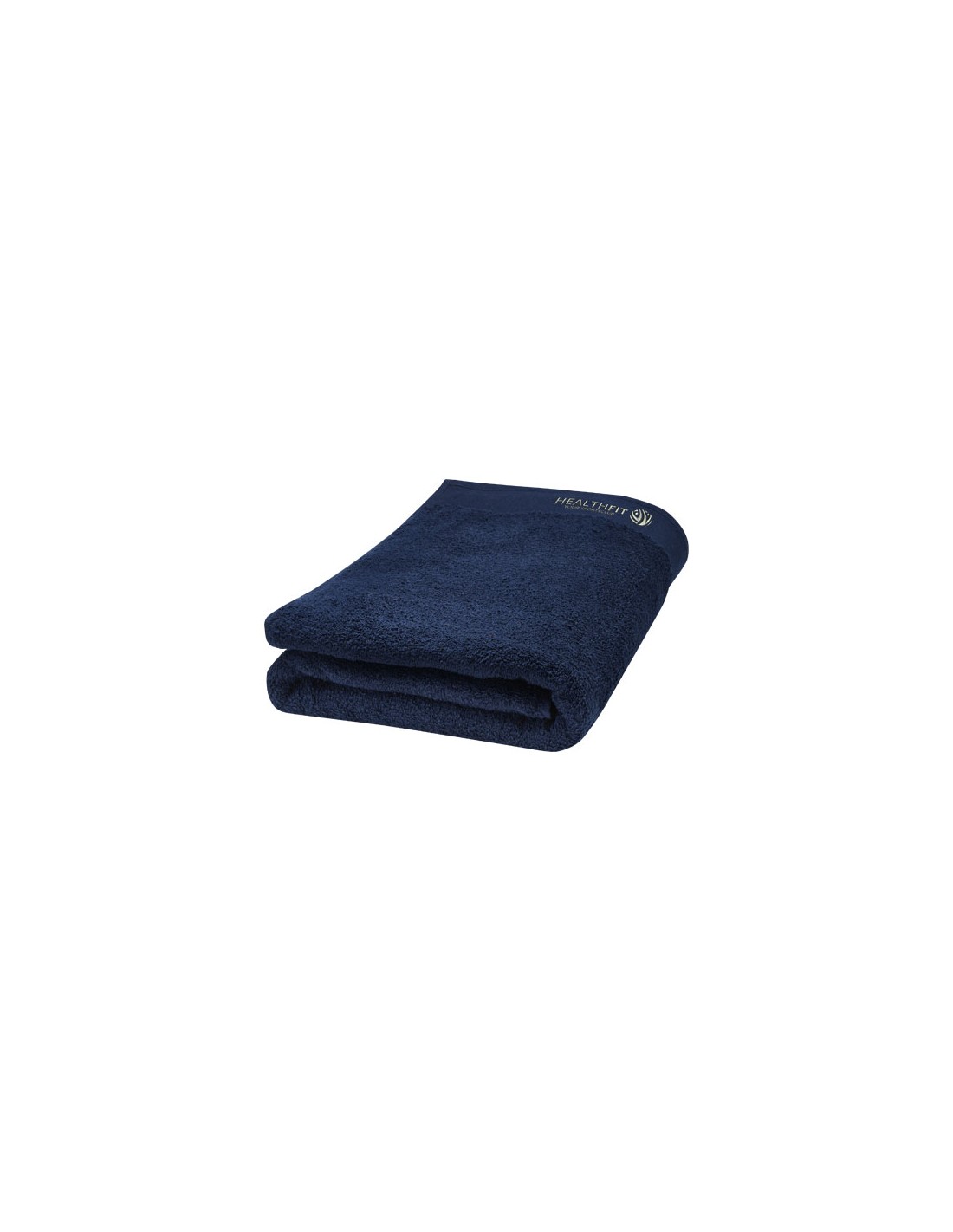 Asciugamano sportivo/spiaggia in microfibra vellutata double-face da 200 gr/m² con chiusura a bottone automatico.