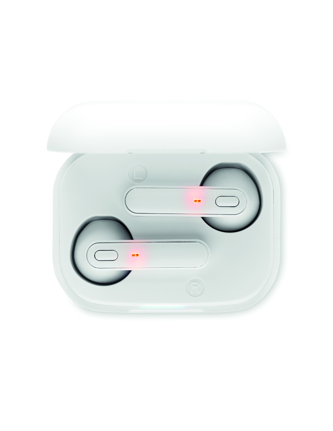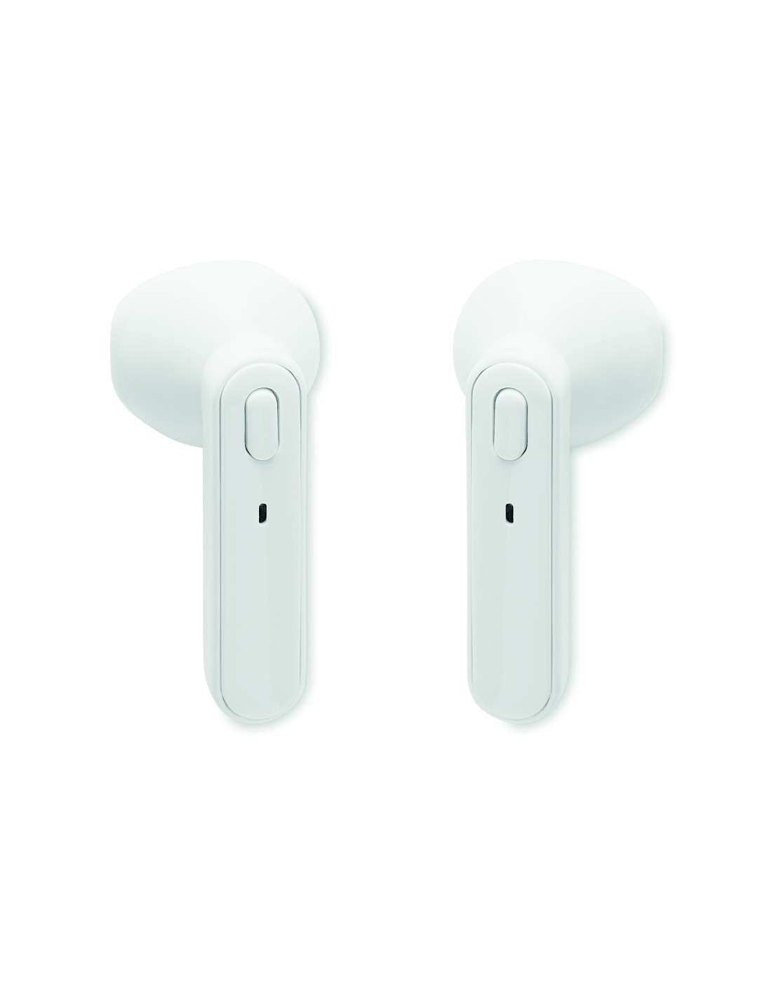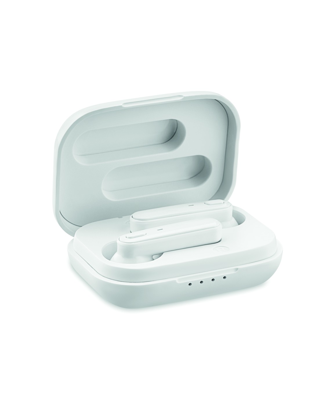Set di 2 auricolari True Wireless Stereo (TWS) 5.3 con microfono e batteria da 30 mAh integrata. Durata di riproduzione di circa 3 ore. Associazione automatica. Include un cavo di ricarica micro USB e una stazione di ricarica da 185 mAh. Realizzato in ABS riciclato.
