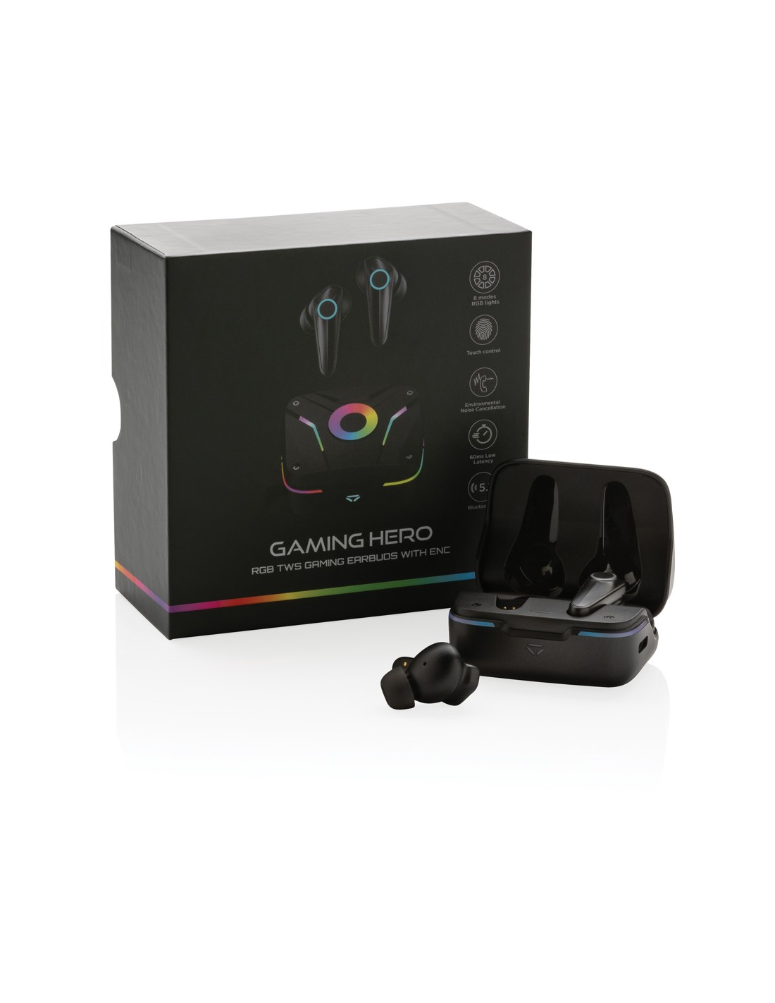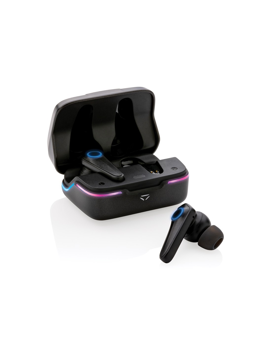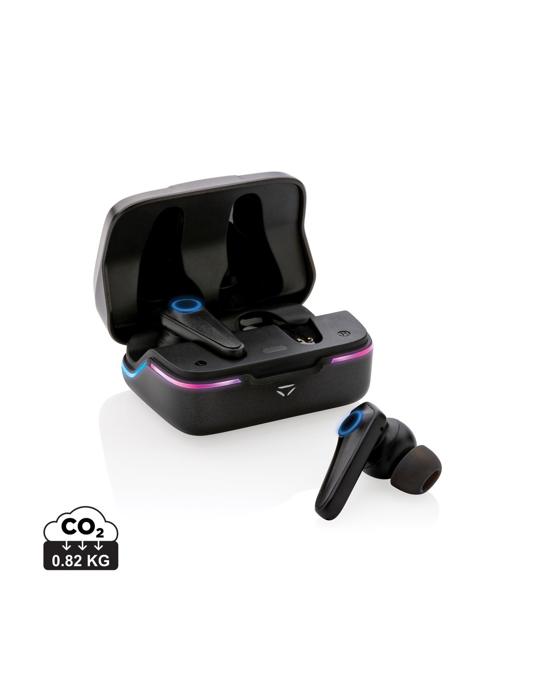 Diventa un eroe dei videogiochi grazie a questi auricolari da gioco di alta qualità realizzati per giocatori professionali. Grazie alla bassa latenza di 60 ms potrai giocare ai videogiochi senza ritardi tra quello che vedi sullo schermo e il suono che stai ascoltando. Include funzione touch per azionare gli auricolari durante le sessioni di gioco. Con ENC integrato per chiamate e comunicazioni cristalline durante il gioco. Le luci RGB integrate possono essere impostate in diverse modalità. Grazie al BT 5.1 avrai una connessione stabile e una distanza operativa fino a 10 metri. Livello di impermeabilità IPX 4. Autonomia fino a 6 ore. La ricarica degli auricolari è in 1 ora mentre la custodia si ricarica in 2 ore. Microfono integrato. Include auricolari di 3 dimensioni. L'articolo e il cavo sono privi di PVC.