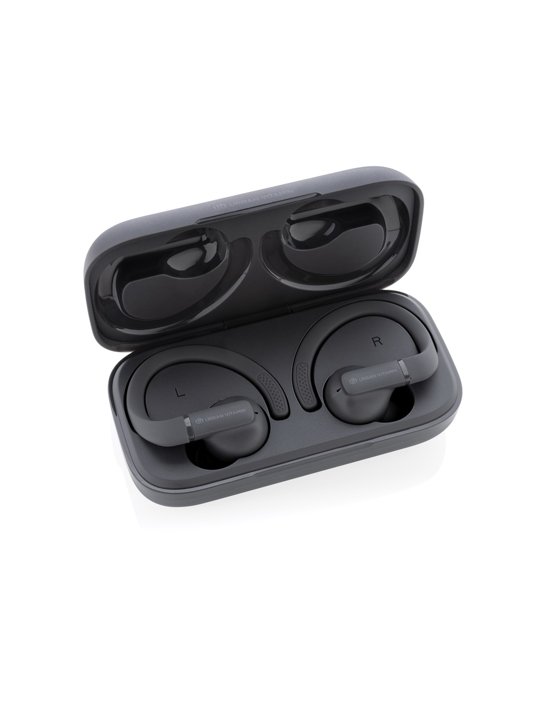 Supera te stesso e porta la tua forma fisica a un livello superiore con questi auricolari da allenamento.Personalizzabili e dalla vestibilità perfetta i ganci sono regolabili in più posizioni per un comfort prolungato e sono realizzati per rimanere sempre in posizione, indipendentemente dall'intensità del tuo allenamento. Sono super leggeri e progettati per le massime prestazioni. Resistono al sudore, alla polvere e all'acqua con classificazione IPX5. Autonomia fino a 8 ore di ascolto grazie alla tecnologia BT 5.3. Gli auricolari e la custodia di ricarica da 600 mAh sono realizzati con ABS/TPE riciclato certificato RCS (Recycled Claim Standard). Contenuto totale riciclato: 55% in base al peso totale dell'articolo. La certificazione RCS garantisce una filiera completamente certificata dei materiali riciclati. Gli auricolari possono essere ricaricati 3 volte dalla custodia di ricarica. Senza PVC e in scatola a platica ridotta.
