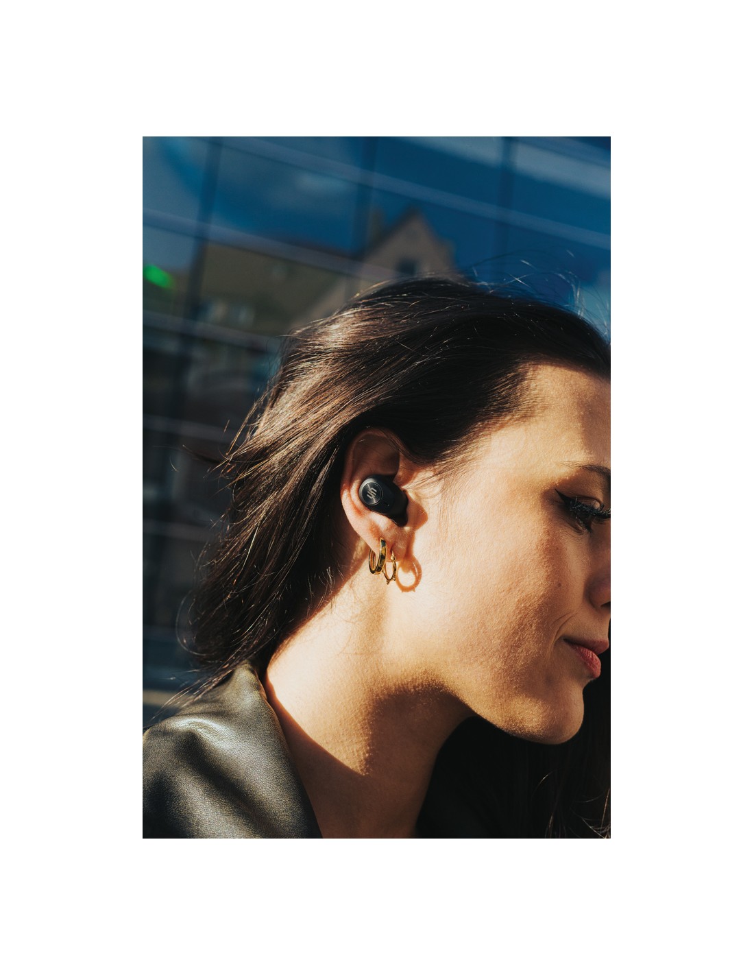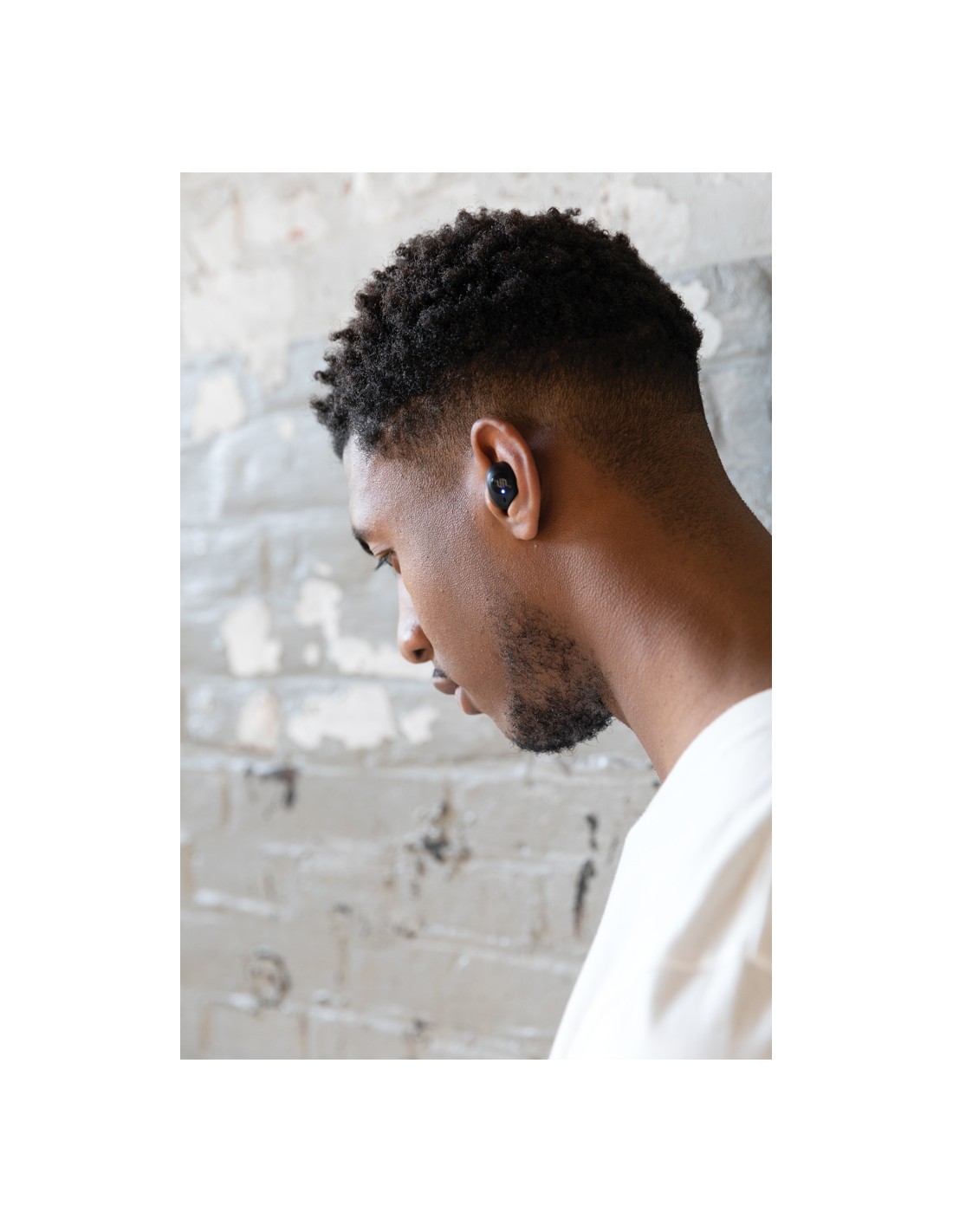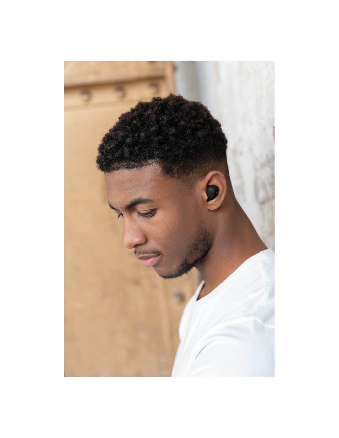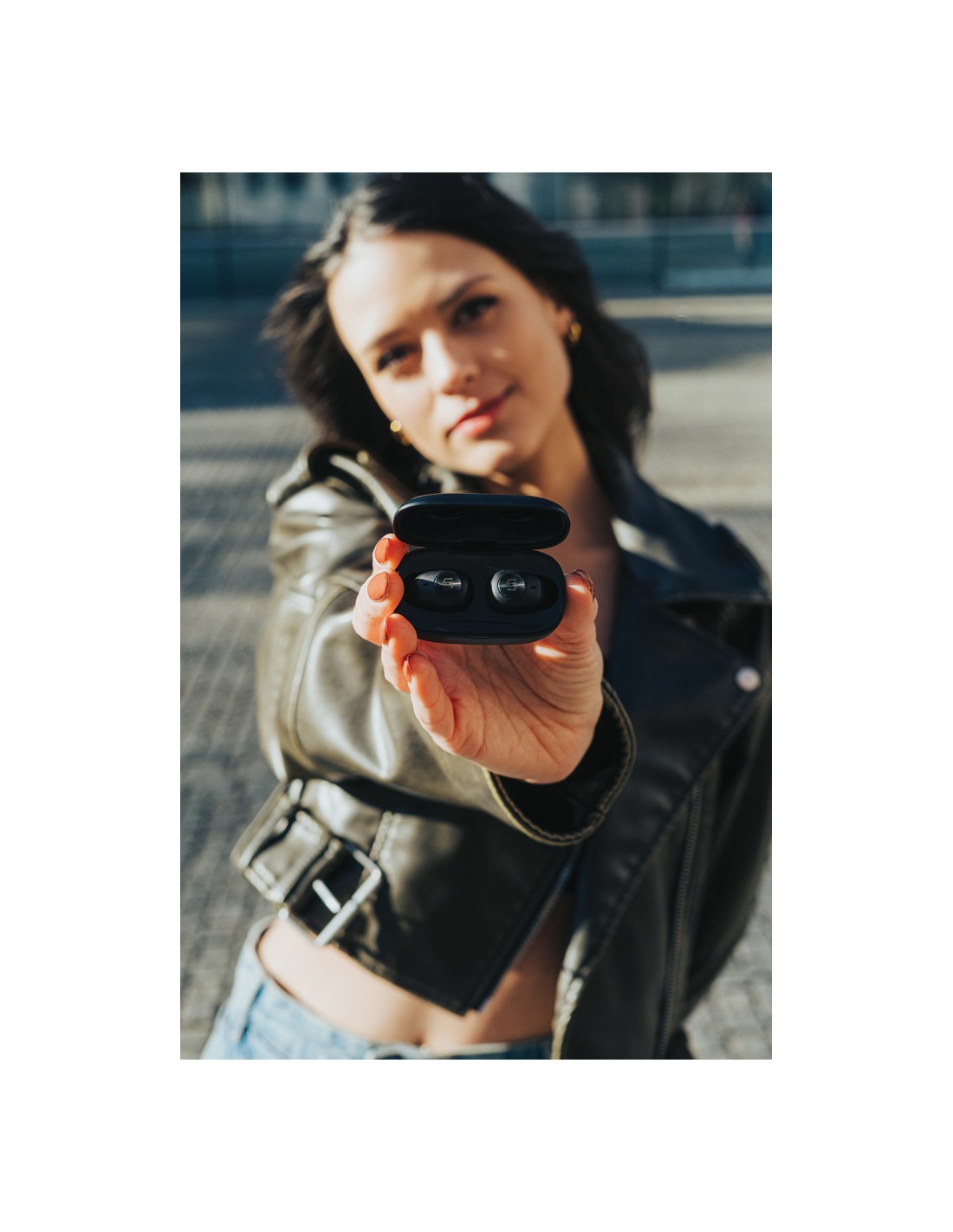 Resterai colpito dal suono di questi auricolari. Sono progettati per essere trasportati con la custodia di ricarica ovunque tu vada. I comodi auricolari hanno autonomia di circa 6 ore di ascolto e la custodia di ricarica consente fino a 20 ore di riproduzione. Abbastanza per farti andare avanti tutto il giorno! Dialoga in modalità stereo e, grazie al microfono ENC integrato, avrai una perfetta qualità di chiamata. Con la funzione di controllo touch integrato devi solo toccare l'auricolare per rispondere con una qualità cristallina. La classificazione IPX4 garantisce che gli auricolari sono resistenti alle intemperie, quindi adatti ad essere utilizzati all'aperto. Auricolari e custodia di ricarica realizzati con ABS riciclato certificato RCS (Recycled Claim Standard). Contenuto totale riciclato: 55% in base al peso totale dell'articolo. Senza PVC e in scatola a platica ridotta.