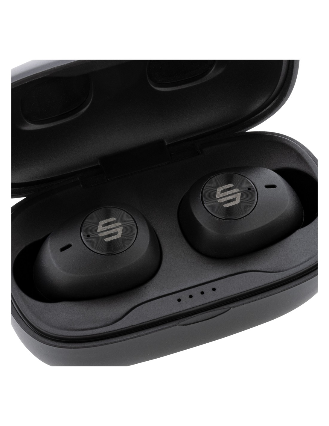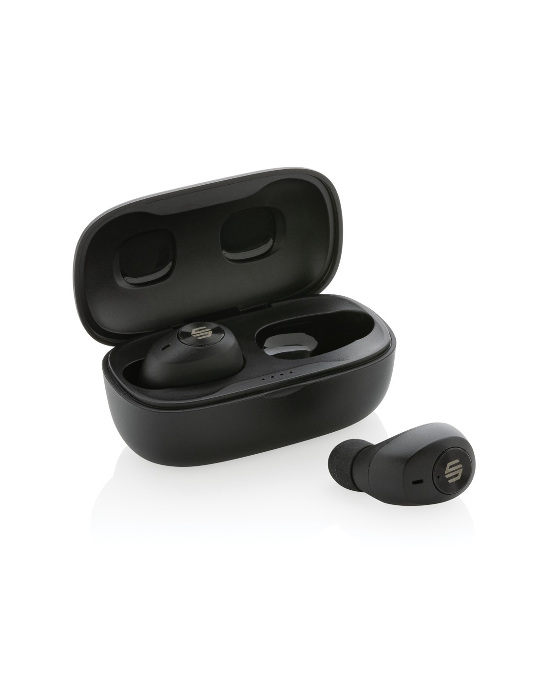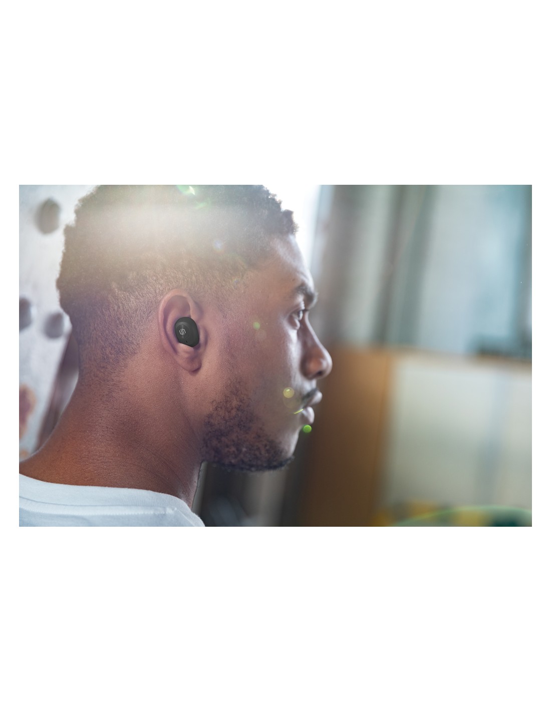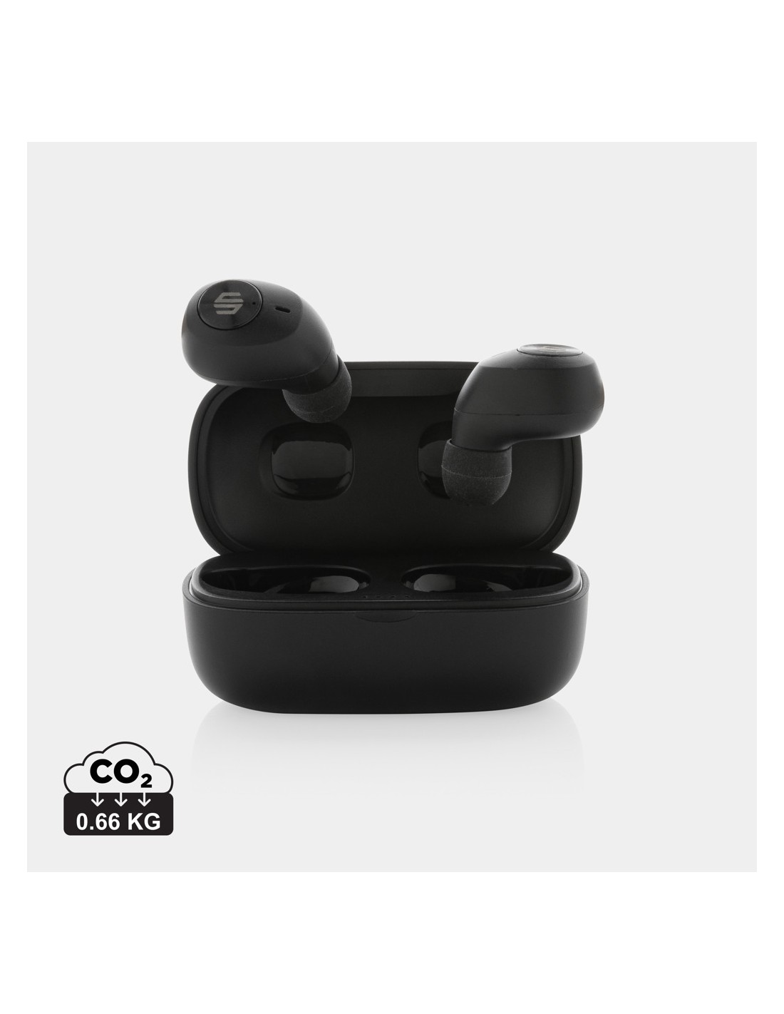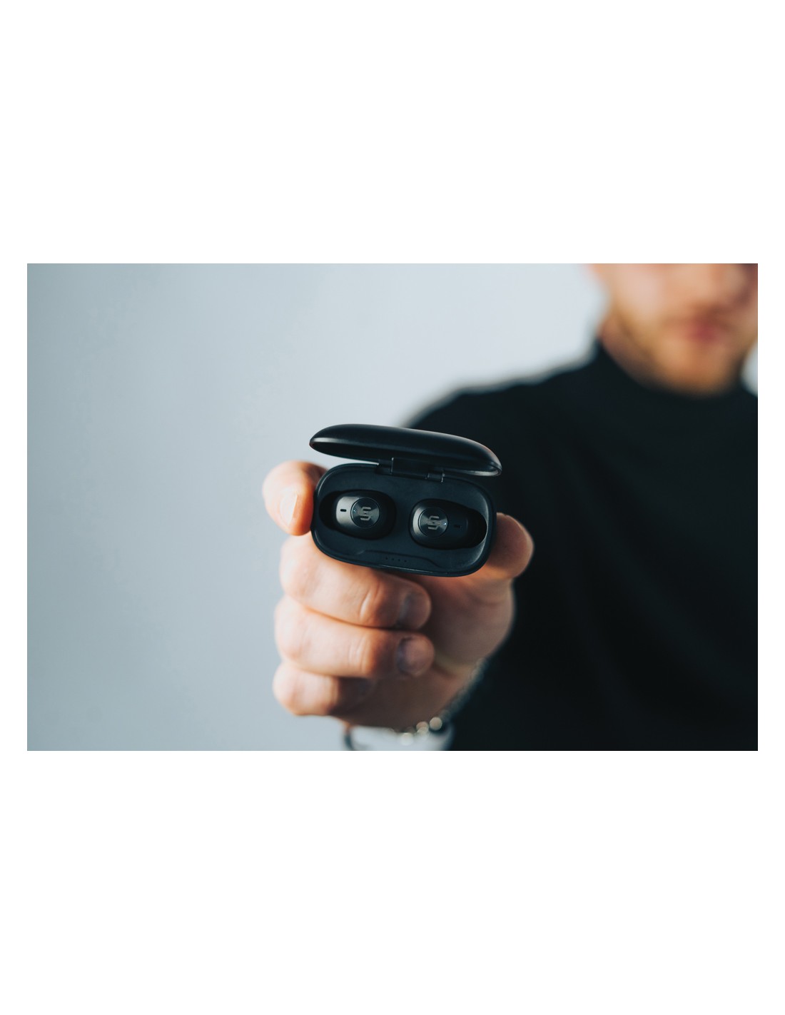 Resterai colpito dal suono di questi auricolari. Sono progettati per essere trasportati con la custodia di ricarica ovunque tu vada. I comodi auricolari hanno autonomia di circa 6 ore di ascolto e la custodia di ricarica consente fino a 20 ore di riproduzione. Abbastanza per farti andare avanti tutto il giorno! Dialoga in modalità stereo e, grazie al microfono ENC integrato, avrai una perfetta qualità di chiamata. Con la funzione di controllo touch integrato devi solo toccare l'auricolare per rispondere con una qualità cristallina. La classificazione IPX4 garantisce che gli auricolari sono resistenti alle intemperie, quindi adatti ad essere utilizzati all'aperto. Auricolari e custodia di ricarica realizzati con ABS riciclato certificato RCS (Recycled Claim Standard). Contenuto totale riciclato: 55% in base al peso totale dell'articolo. Senza PVC e in scatola a platica ridotta.