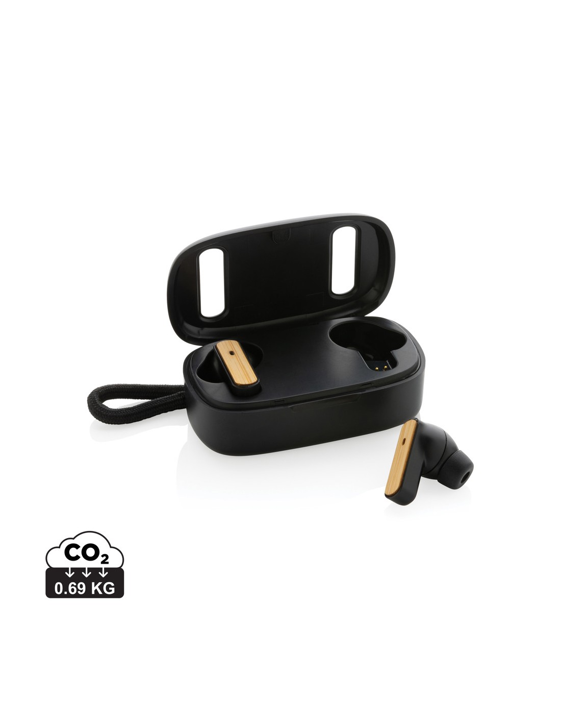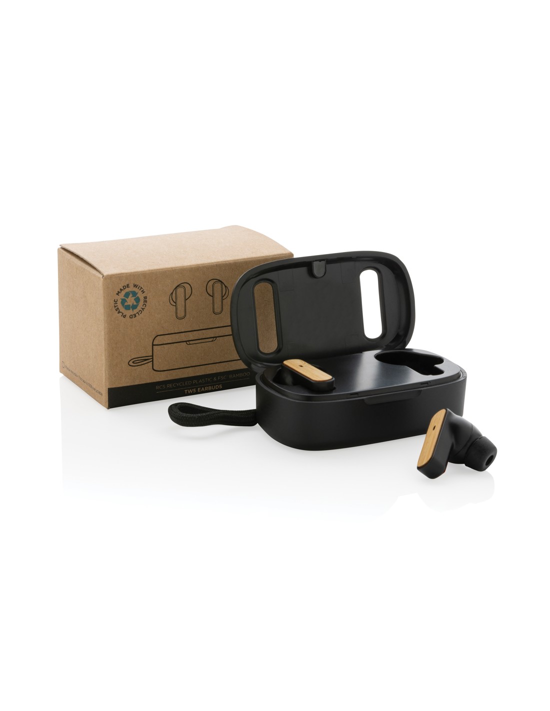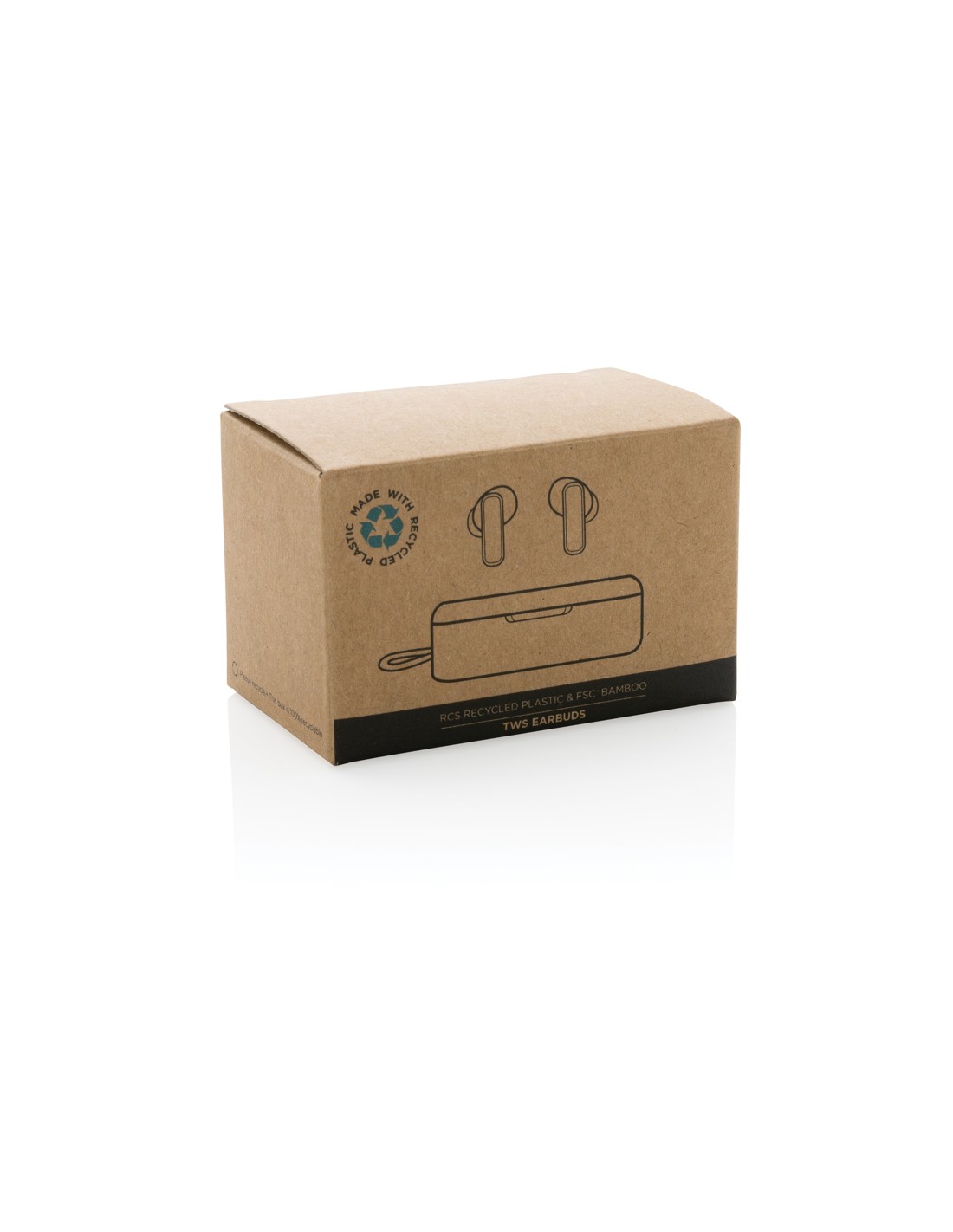 Set di 2 auricolari True Wireless Stereo (TWS) 5.3 con microfono e batteria da 30 mAh integrata. Durata di riproduzione di circa 3 ore. Associazione automatica. Include un cavo di ricarica micro USB e una stazione di ricarica da 185 mAh. Realizzato in ABS riciclato.