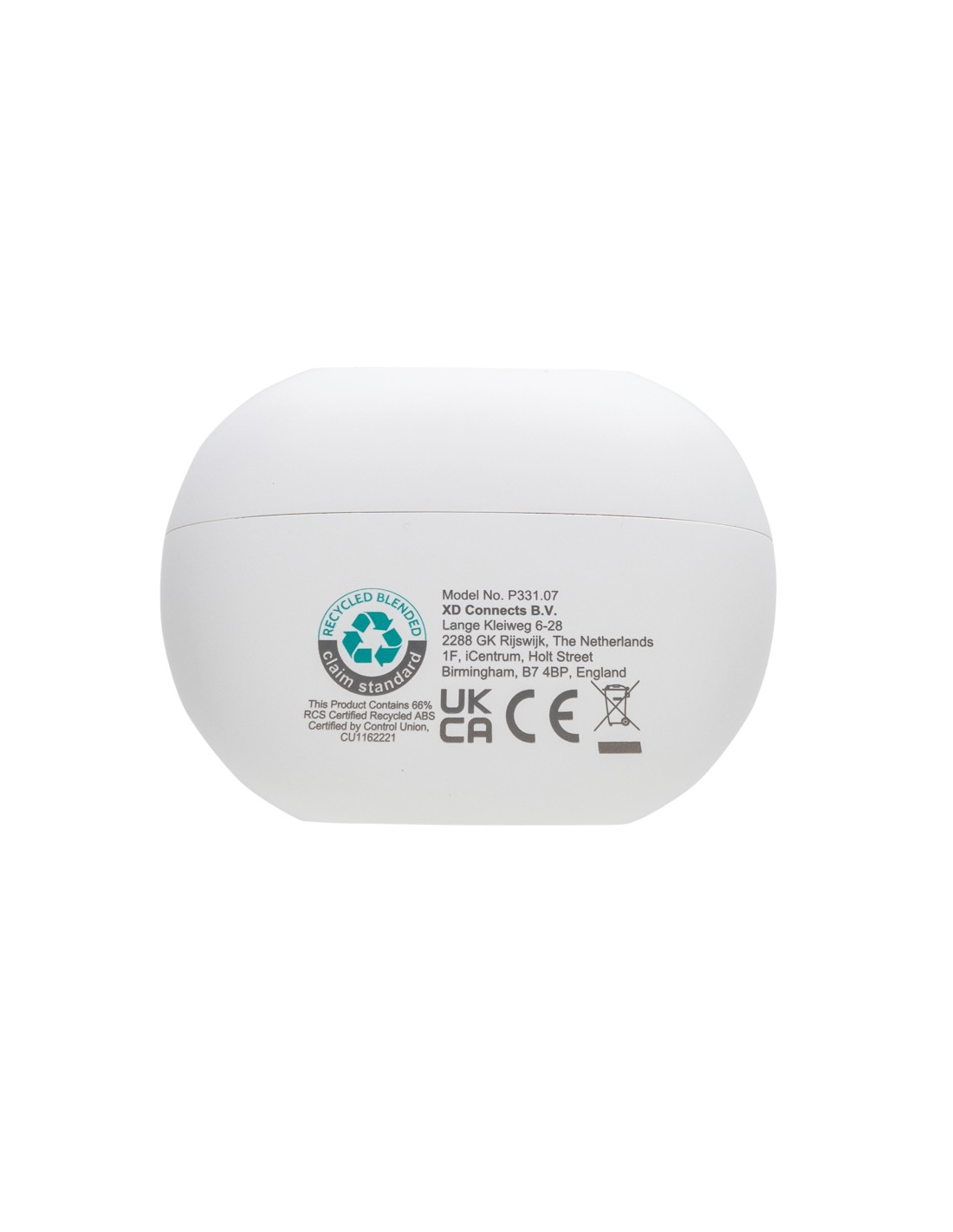 Esclusivi auricolari wireless a doppia ricarica con pannello solare integrato nella custodia realizzata con ABS riciclato certificato RCS. Contenuto riciclato totale: 21% in base al peso totale dell'articolo. La certificazione RCS garantisce una catena di approvvigionamento dei materiali...