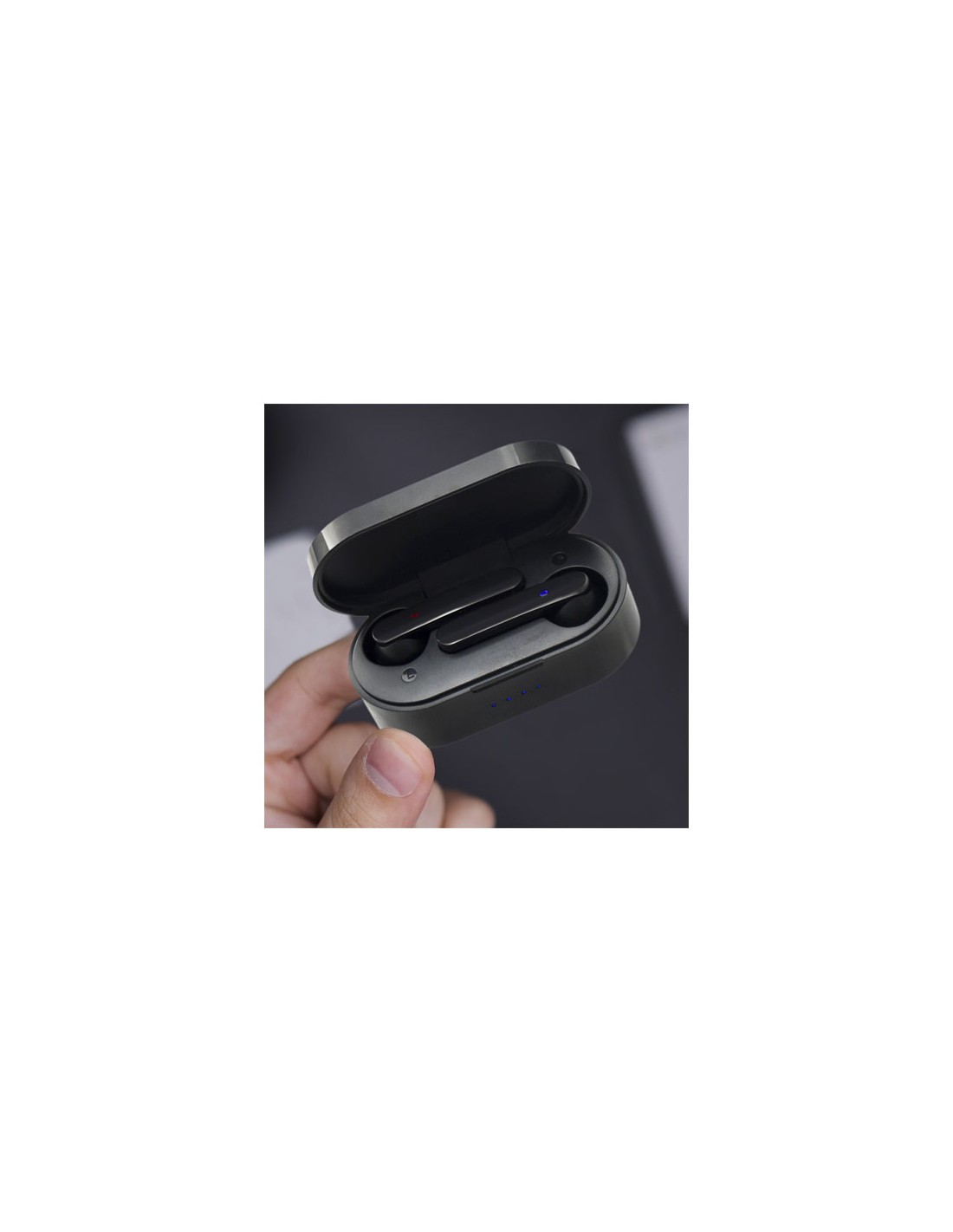 Auricolari wireless con tecnologia ENC che elimina i rumori esterni. Gli auricolari hanno un'autonomia di 6 ore e sono dotati di una funzione di accensione automatica che li attiva non appena vengono estratti dalla custodia. Inoltre, la base di ricarica è compatibile con i caricabatterie...