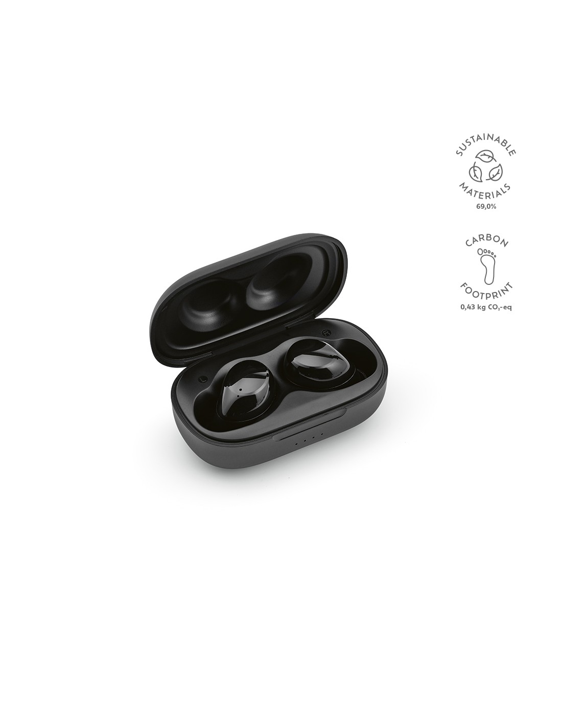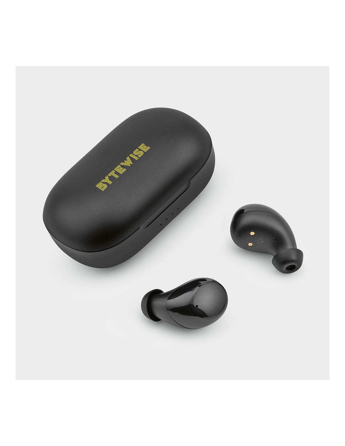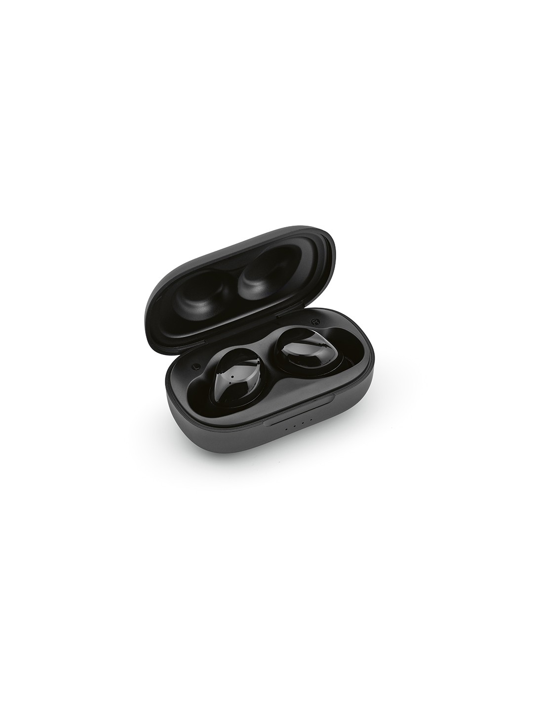 Auricolari wireless con qualità audio premium. Gli auricolari possono essere riposti e ricaricati nella base in metallo a forma cilindrica, decorabile con la stampa luminosa di un logo. La batteria nella base può ricaricare gli auricolari due volte. Microfono incorporato. Bluetooth® 5.0....
