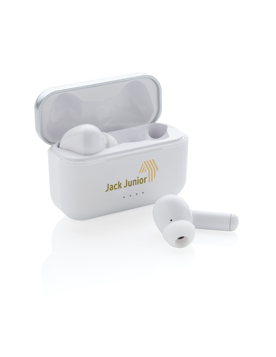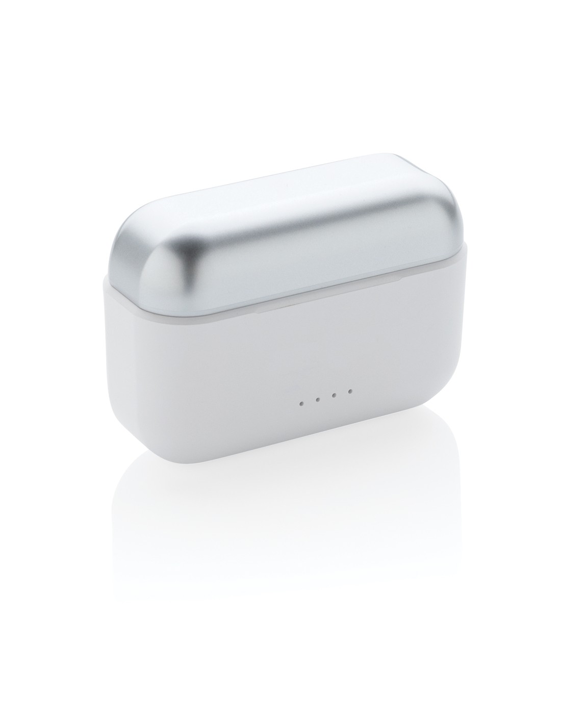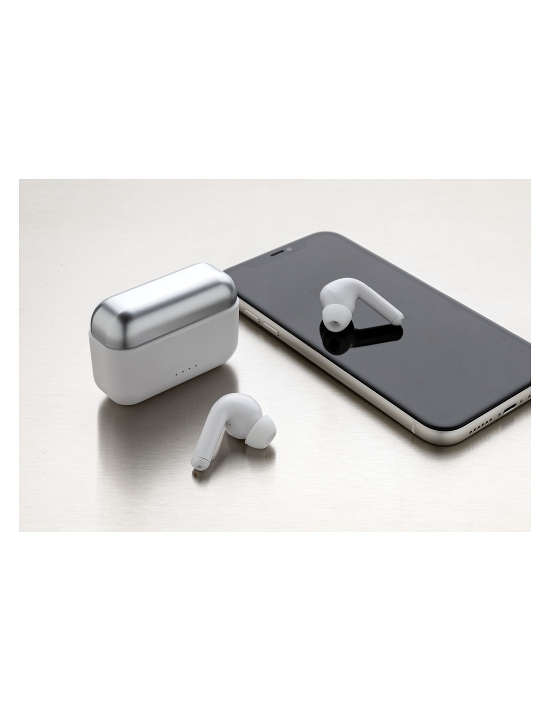 Auricolari true wireless di livello superiore in custodia di ricarica con batteria a lunga durata, custodia ricaricabile wireless e qualità del suono ottimale. Gli auricolari perfettamente aderenti hanno una batteria da 30 mAh e possono essere ricaricati nella custodia di ricarica da 300 mAh in circa 1,5 ore tramite un ingresso type C ultraveloce. La custodia di ricarica può anche essere caricata posizionandola su qualsiasi base di ricarica wireless. Grazie alla funzione di auto pairing si connetteranno facilmente al tuo dispositivo mobile. Autonomia a volume medio di circa 6 ore e un tempo di standby di 40 ore. Grazie alla tecnologia BT 5.0 avrai sempre una connessione ottimale. Distanza operativa fino a 10 metri. Includono funzione di risposta alle chiamate e microfono. Struttura in resistente ABS. Rispondi alle chiamate in stereo; microfono incluso. Include auricolari in silicone di 3 dimensioni. Compreso cavo di ricarica in materiale TPE senza PVC.